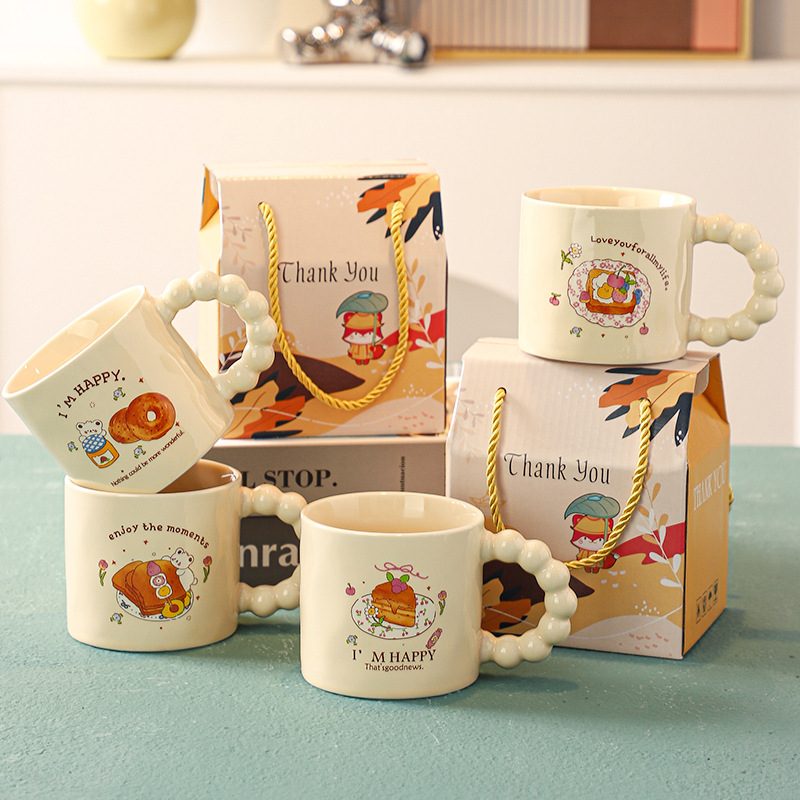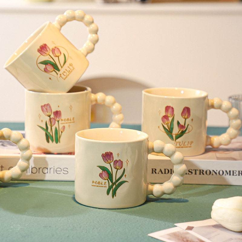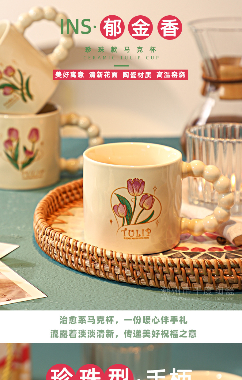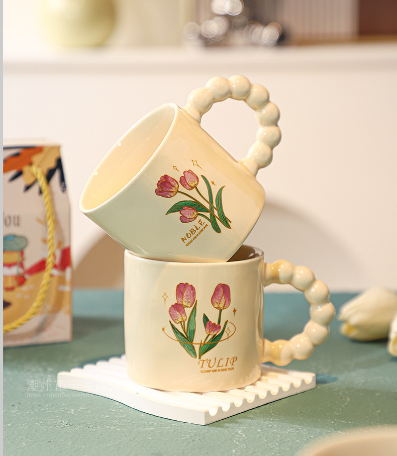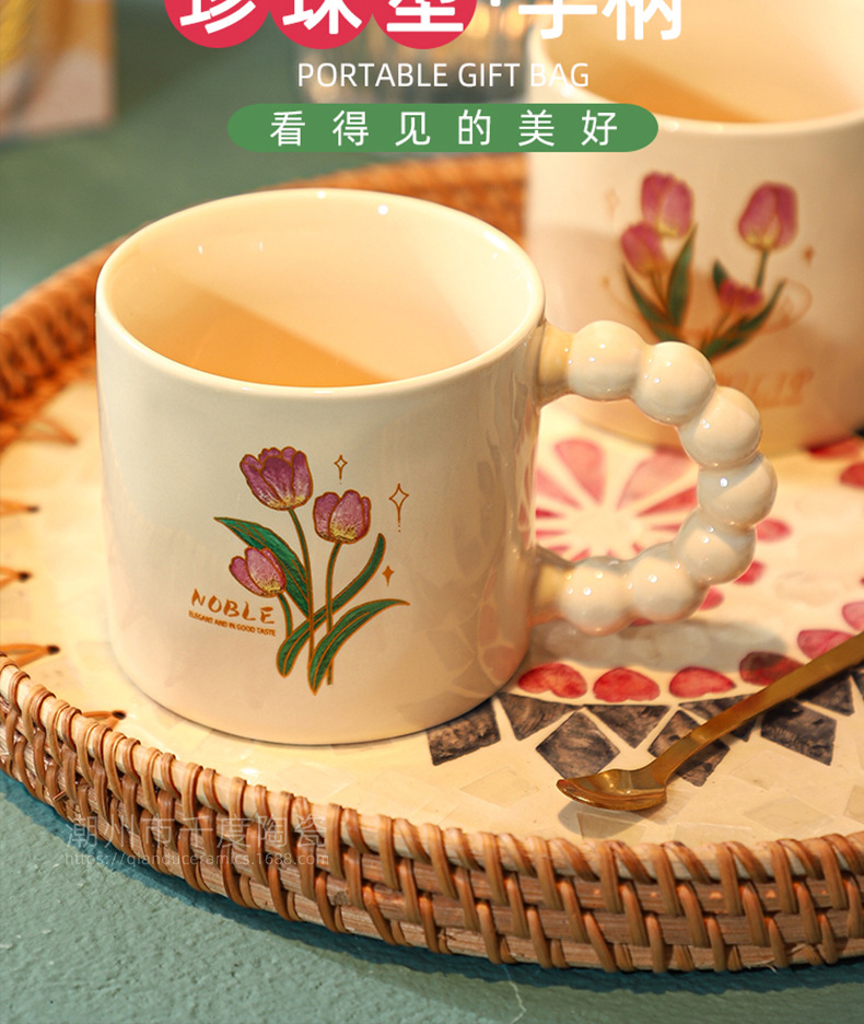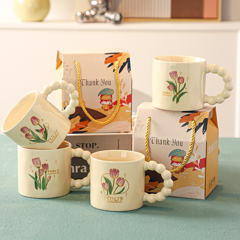 튤립 머그잔 Ins 높은 색상 가치 선물 상자 세라믹 컵 인쇄 로고 동반 선물 컵 워터 컵 작은 선물스토어 가기