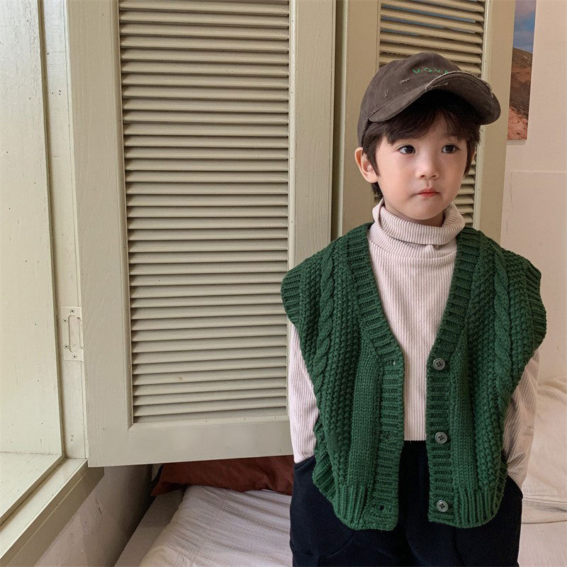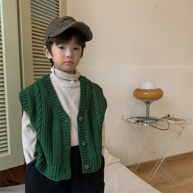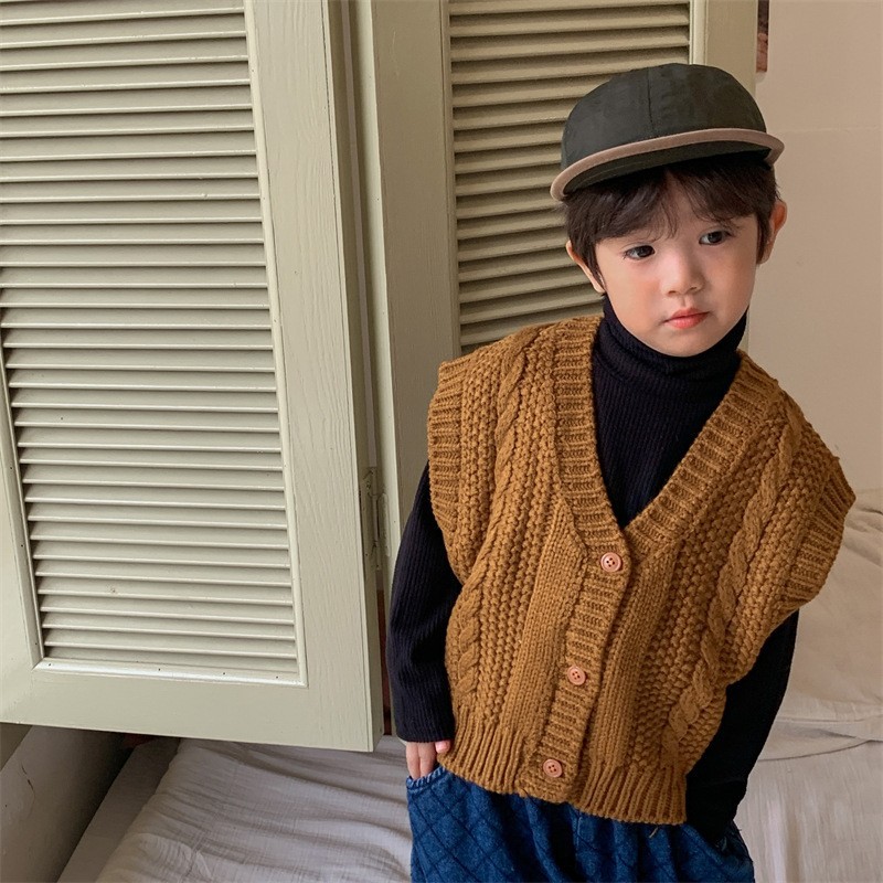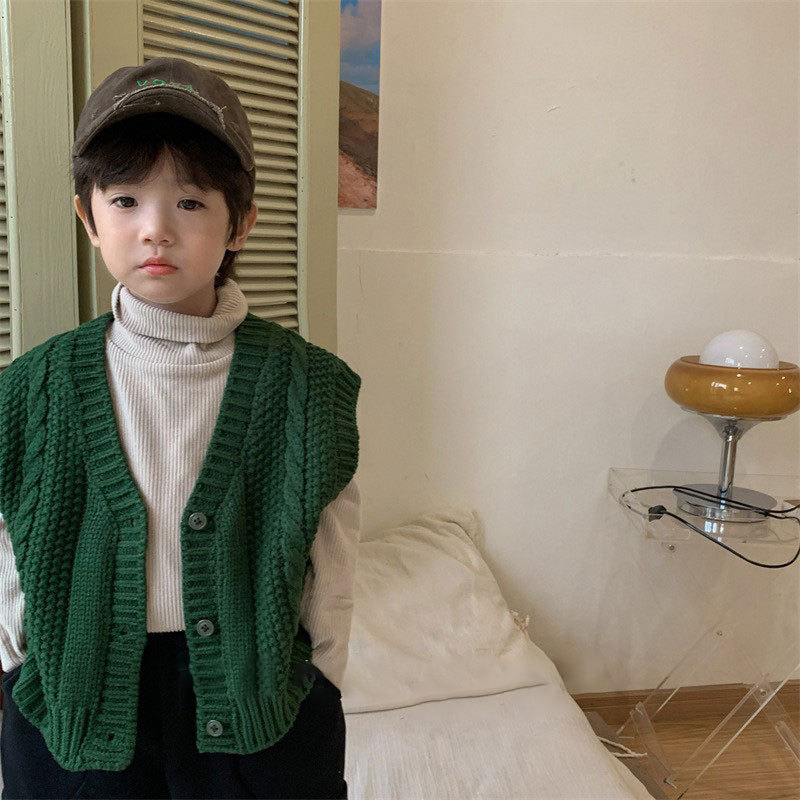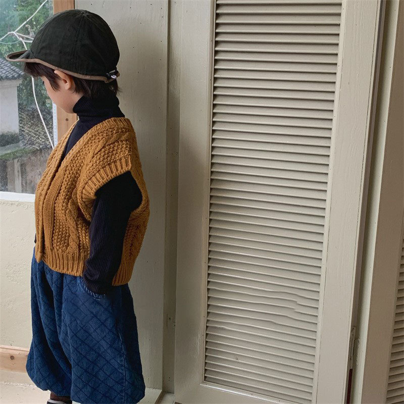 디자인 가을 2023 소년의 트위스트 스웨터 어린 시절 모리 스타일 복고풍 조끼 카디건 스웨터