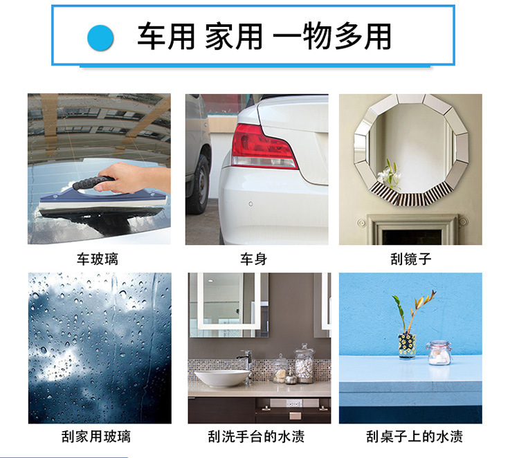 ●刮水刀也可在清洁家内玻璃门、用于在车身或玻璃上贴大面积贴纸时使用。轻轻一刮,水迹不留!