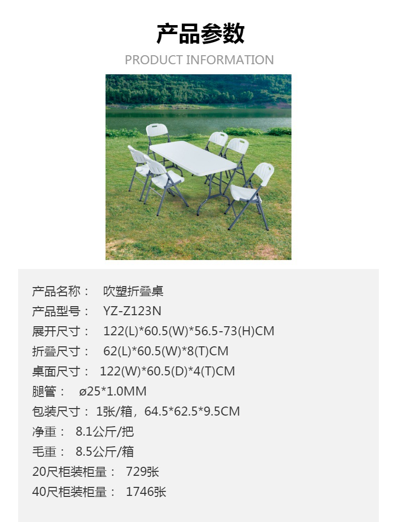 中空吹塑户外折叠桌(型号YZ-Z123N)