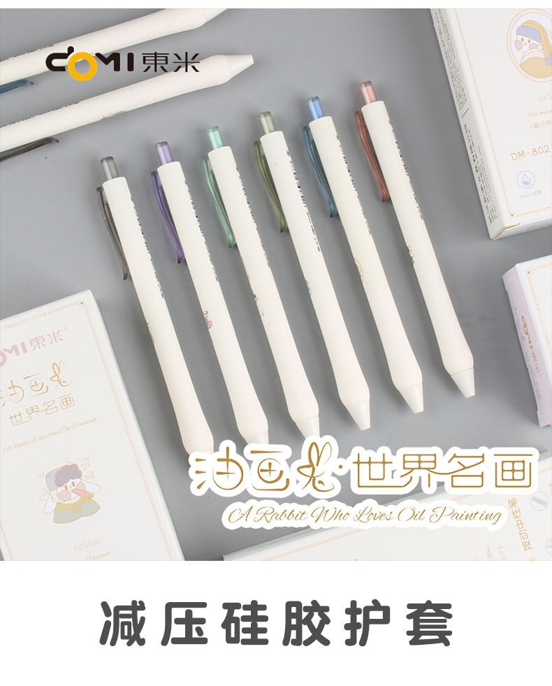 동미 802 유화 토끼 프레스 젤 펜 하이 컬러 가치 세계 유명 그림 더블 비드 0.5mmCS 헤드 시그니처 브러시 펜
