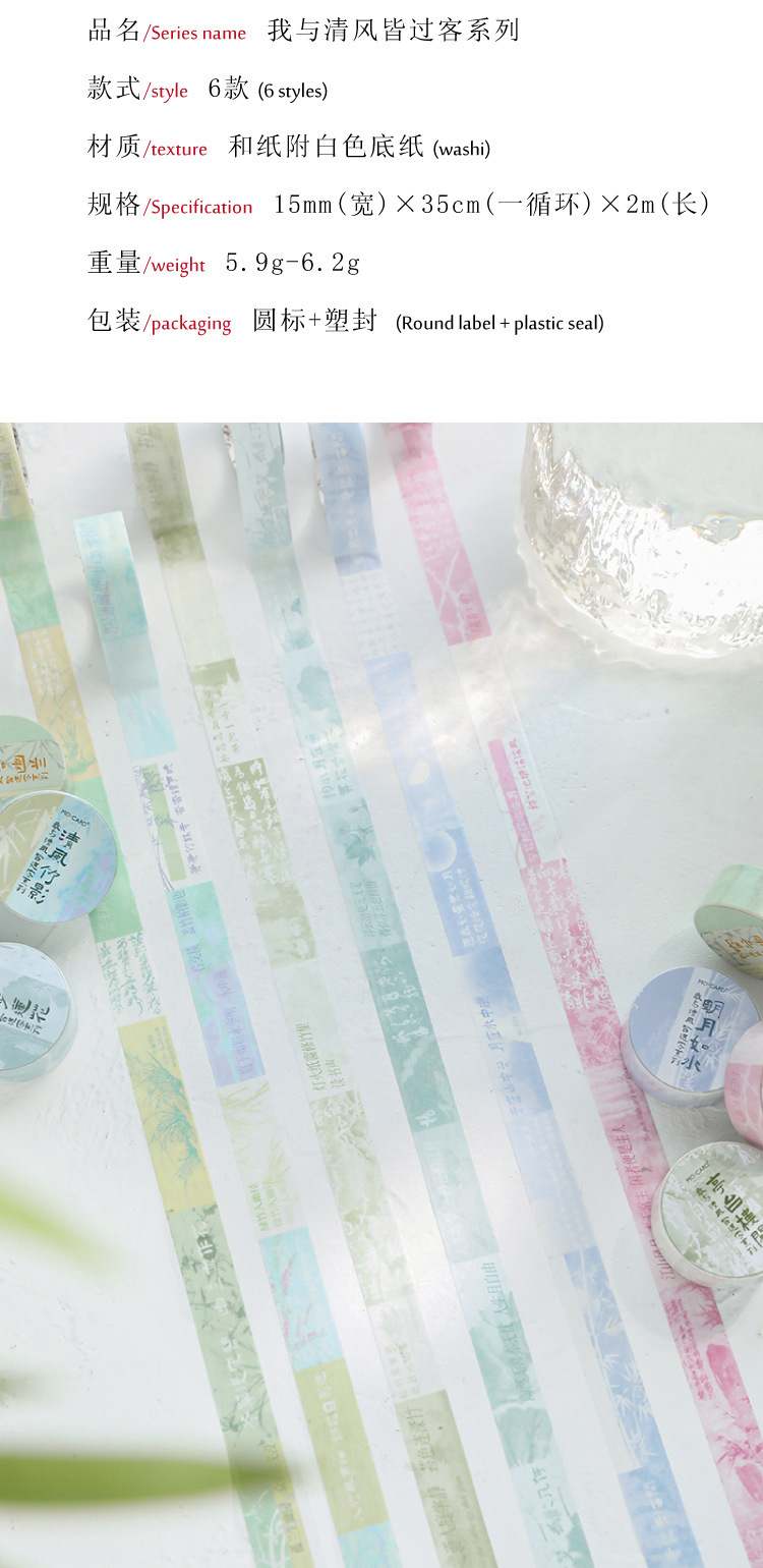 모모와지 테이프, 나는 바람과 같은 여객, 시리즈 고전시 수첩 장식 소재 스티커, 문예