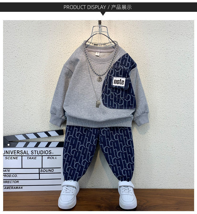 봄 남아 패션 정장, 가을 의류, 아동용 긴팔 스웨트셔츠, 캐주얼 바지, 서양식 아동 운동복 투피스 세트스토어 가기