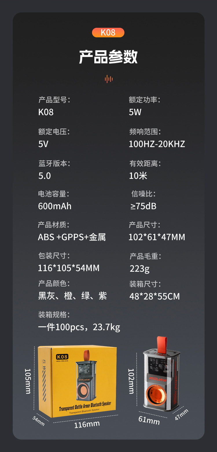 K08 블루투스 스피커 미니 휴대 용이 자동차 블루투스 스피커 서브 우퍼 스피커 k08 분위기 조명스토어 가기