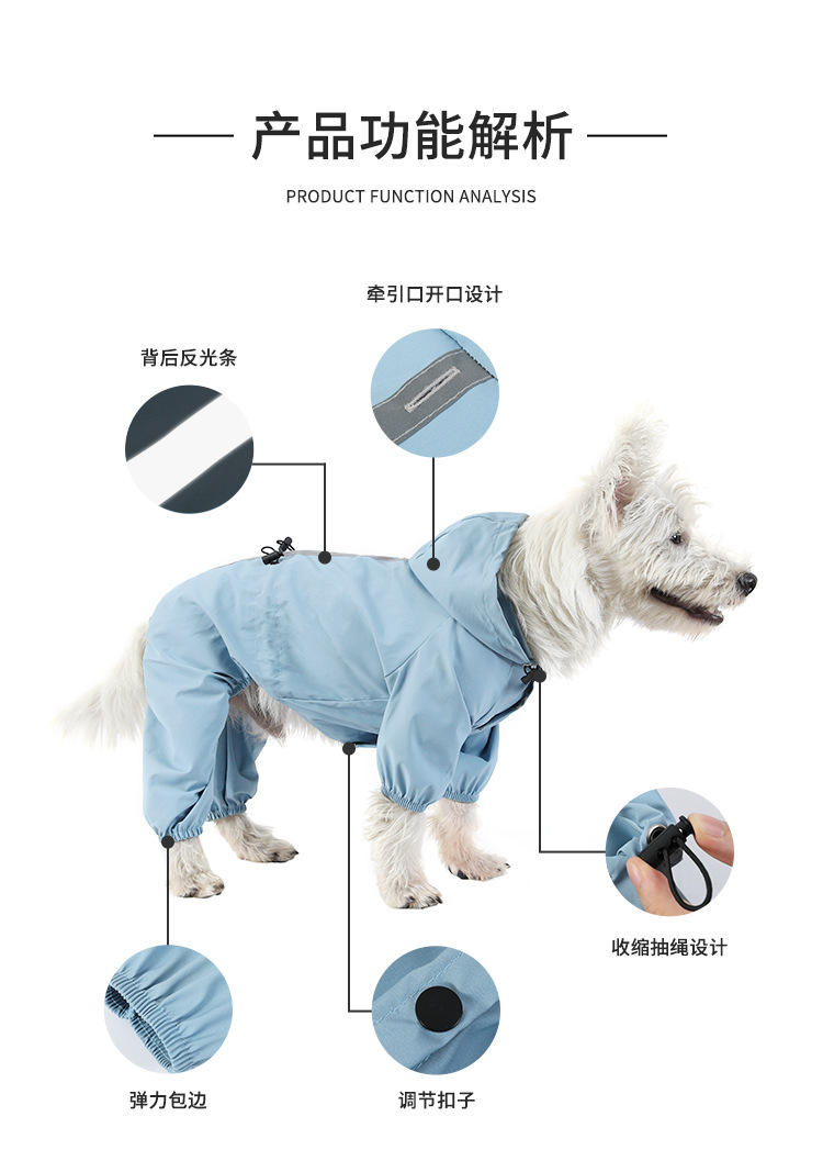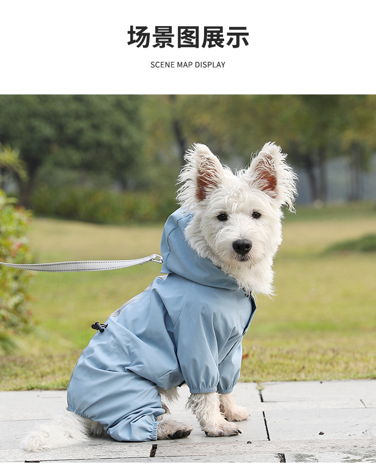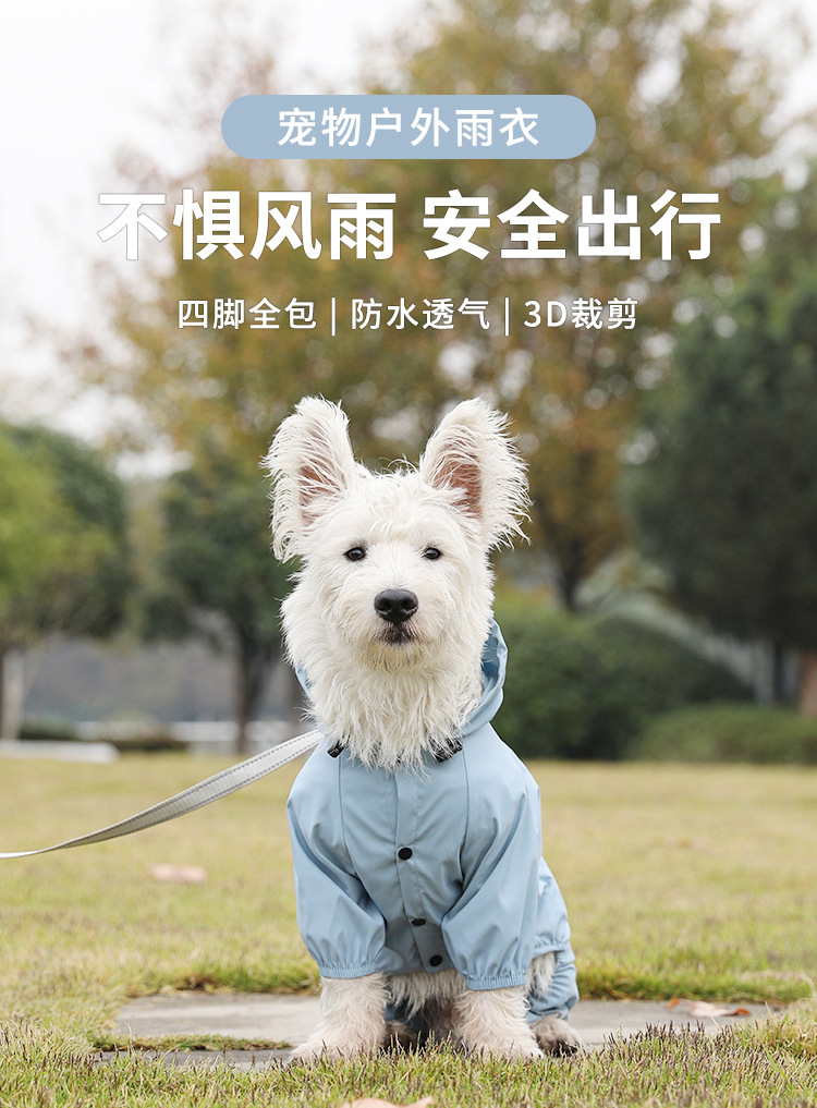 跨境宠物可牵引狗狗四脚雨衣防水大中小型犬宠物雨天外出衣服批发