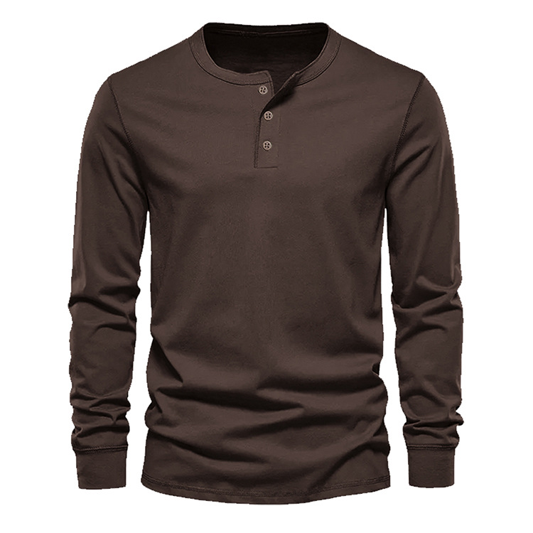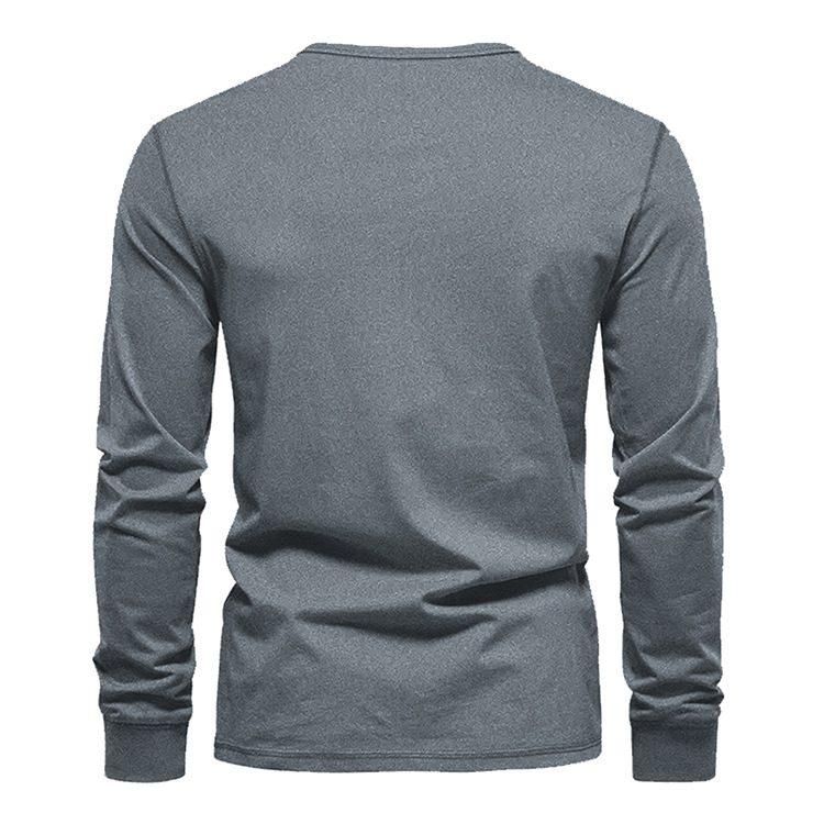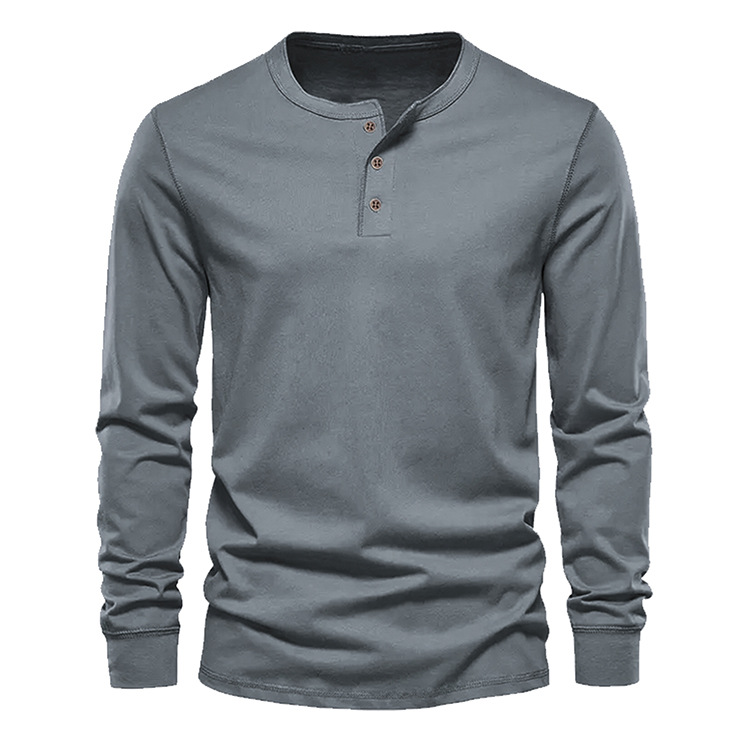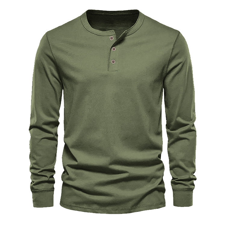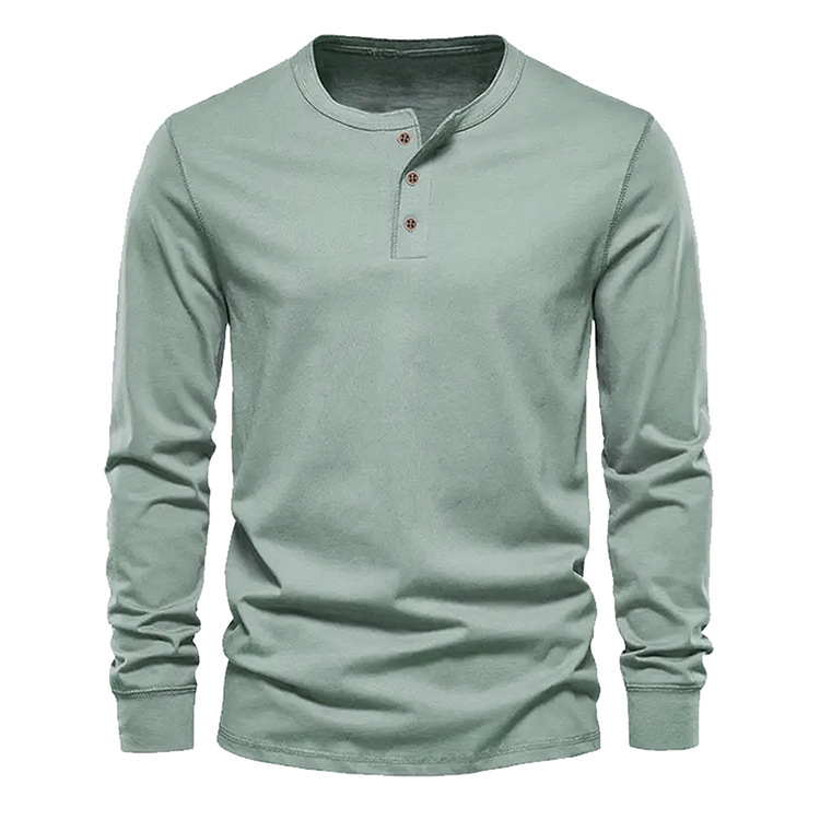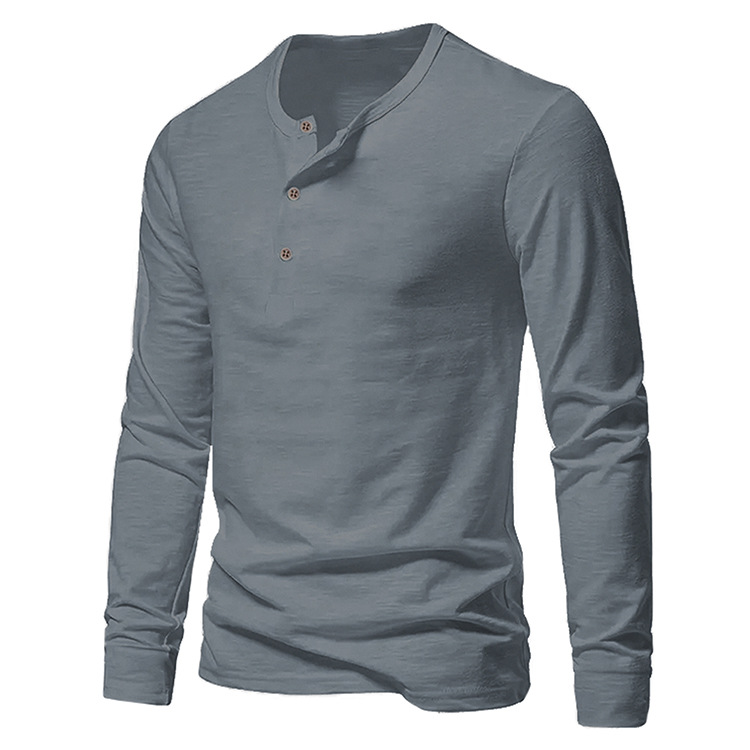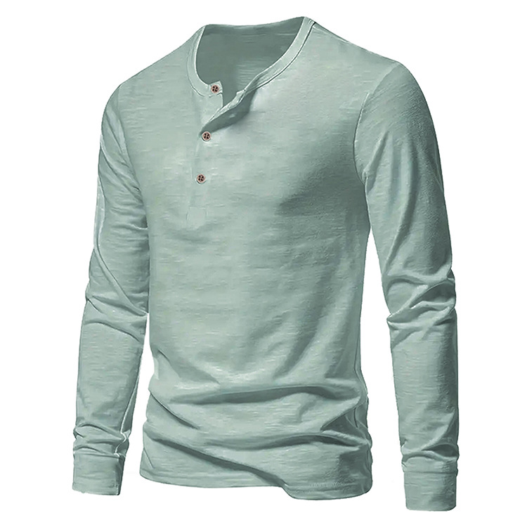 크로스보더 남성복 봄/가을 남성 긴팔 티셔츠 미국 스타일 청소년 버드아이 원단 속건 티셔츠 남성 풀오버 헨리셔츠