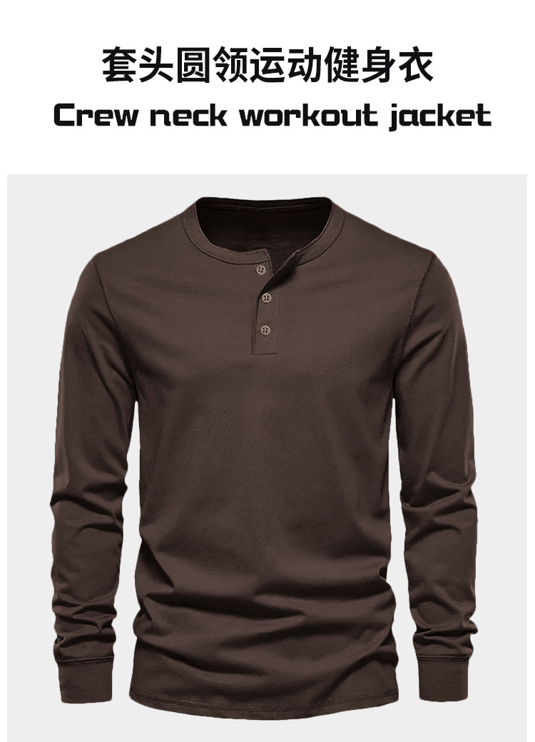 크로스보더 남성복 봄/가을 남성 긴팔 티셔츠 미국 스타일 청소년 버드아이 원단 속건 티셔츠 남성 풀오버 헨리셔츠스토어 가기