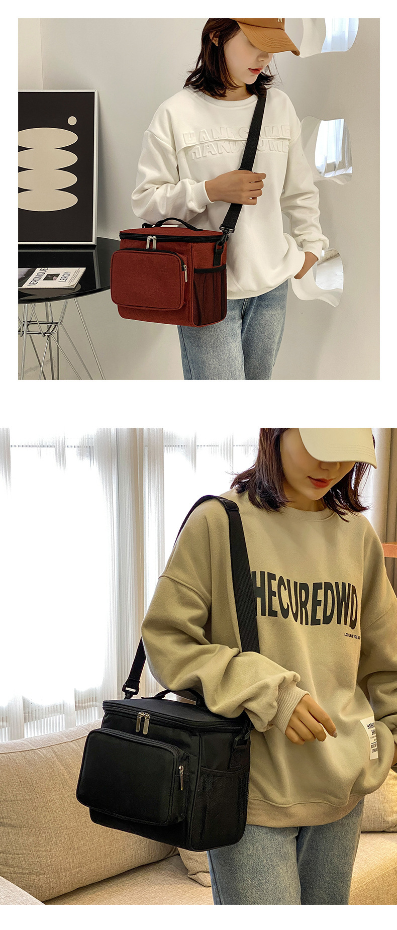 크로스 보더 두꺼운 방수 어깨 크로스바디 대형 아이스 백 휴대용 도시락 가방 야외 피크닉 가방 학생 도시락 가방스토어 가기