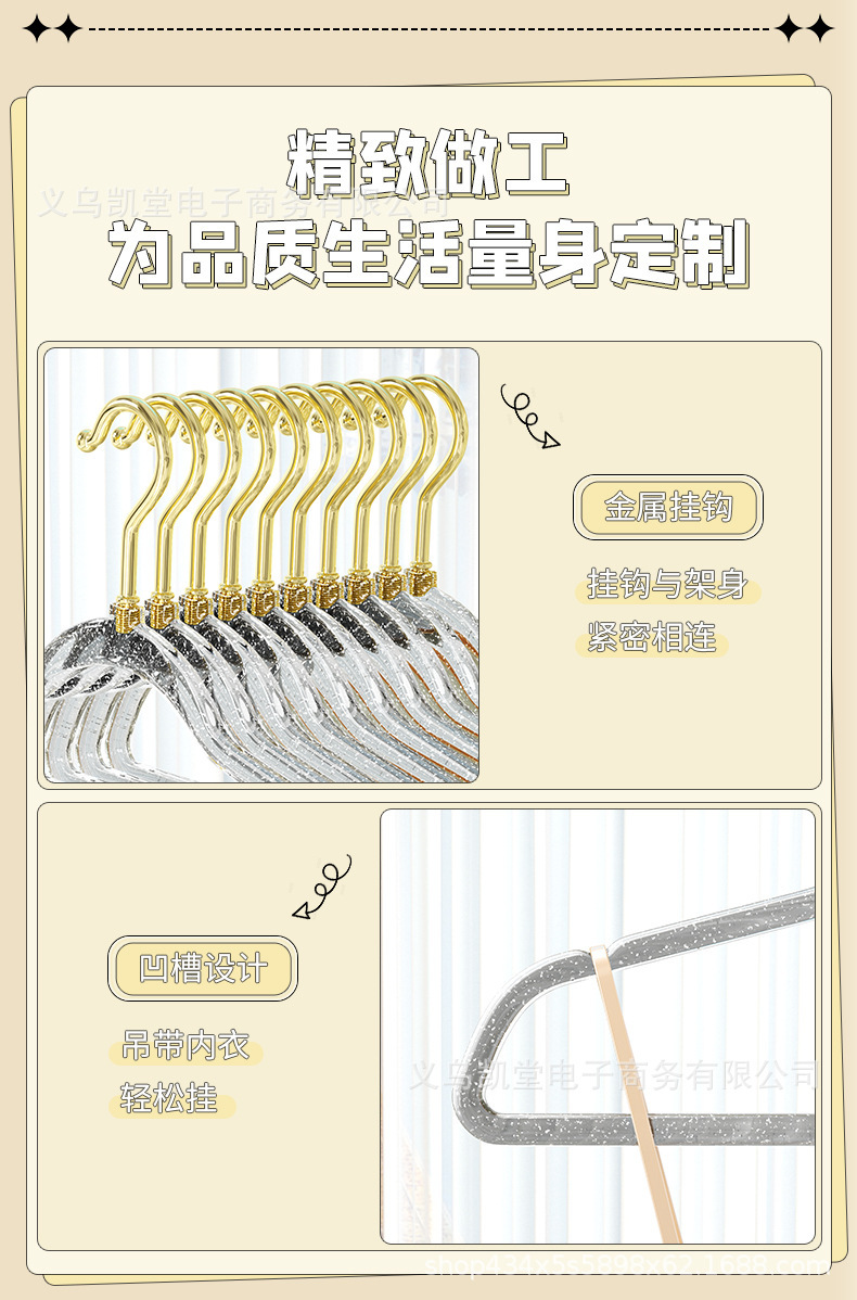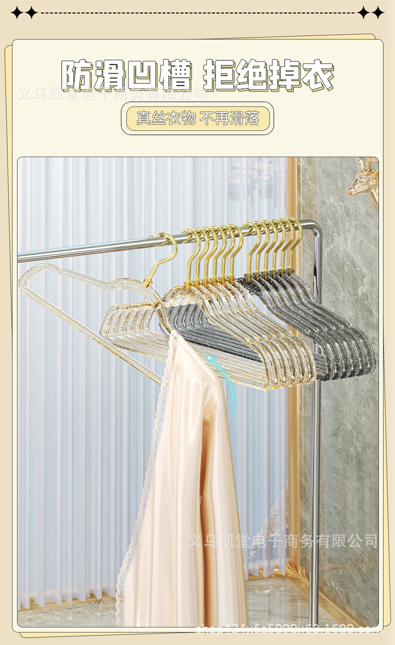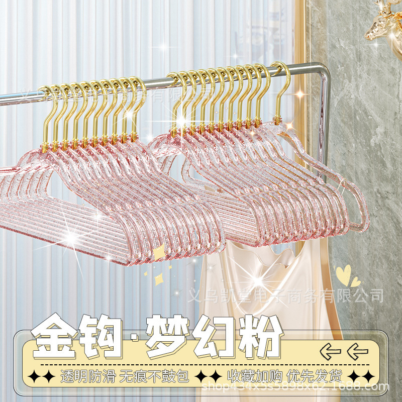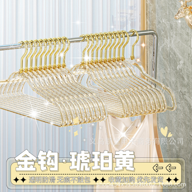 금색 가루가 들어간 투명 옷걸이, 인스타그램과 샤오홍슈에서 동일한 스타일, 가정용 옷걸이, 흔적 없는 미끄럼 방지 옷걸이, 모던하고 심플한 디자인스토어 가기