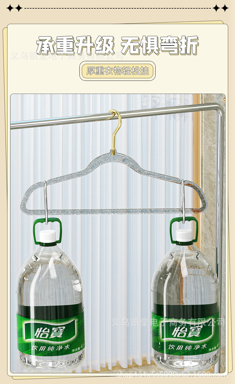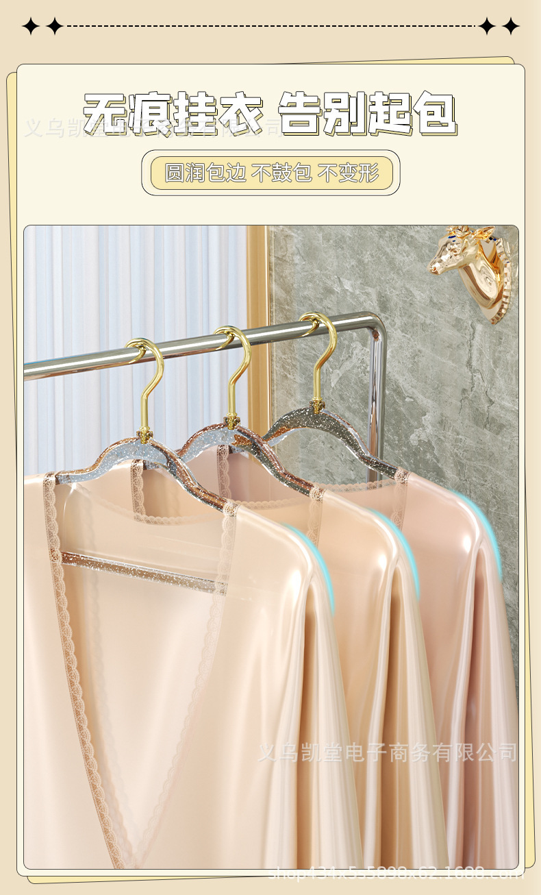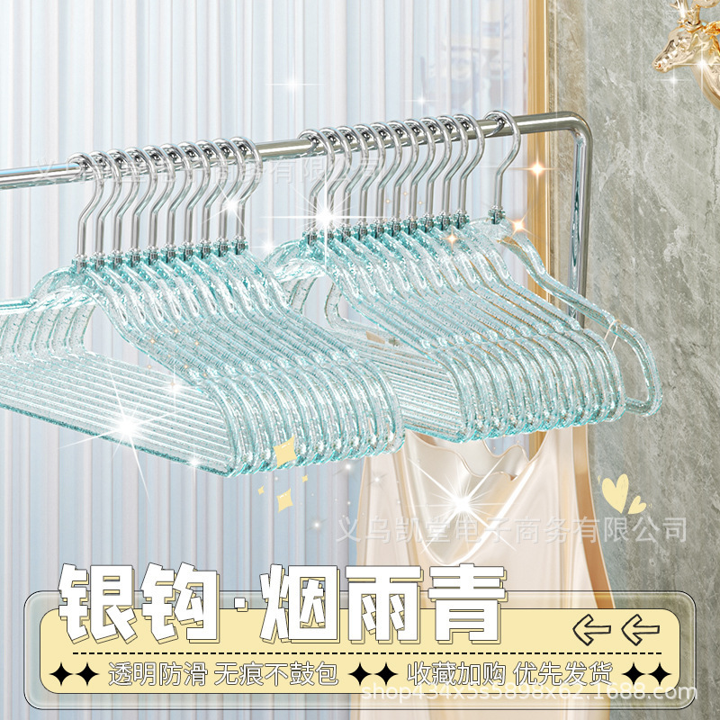금색 가루가 들어간 투명 옷걸이, 인스타그램과 샤오홍슈에서 동일한 스타일, 가정용 옷걸이, 흔적 없는 미끄럼 방지 옷걸이, 모던하고 심플한 디자인
