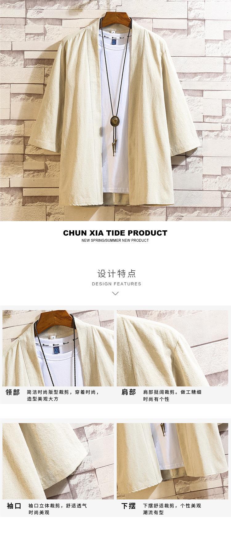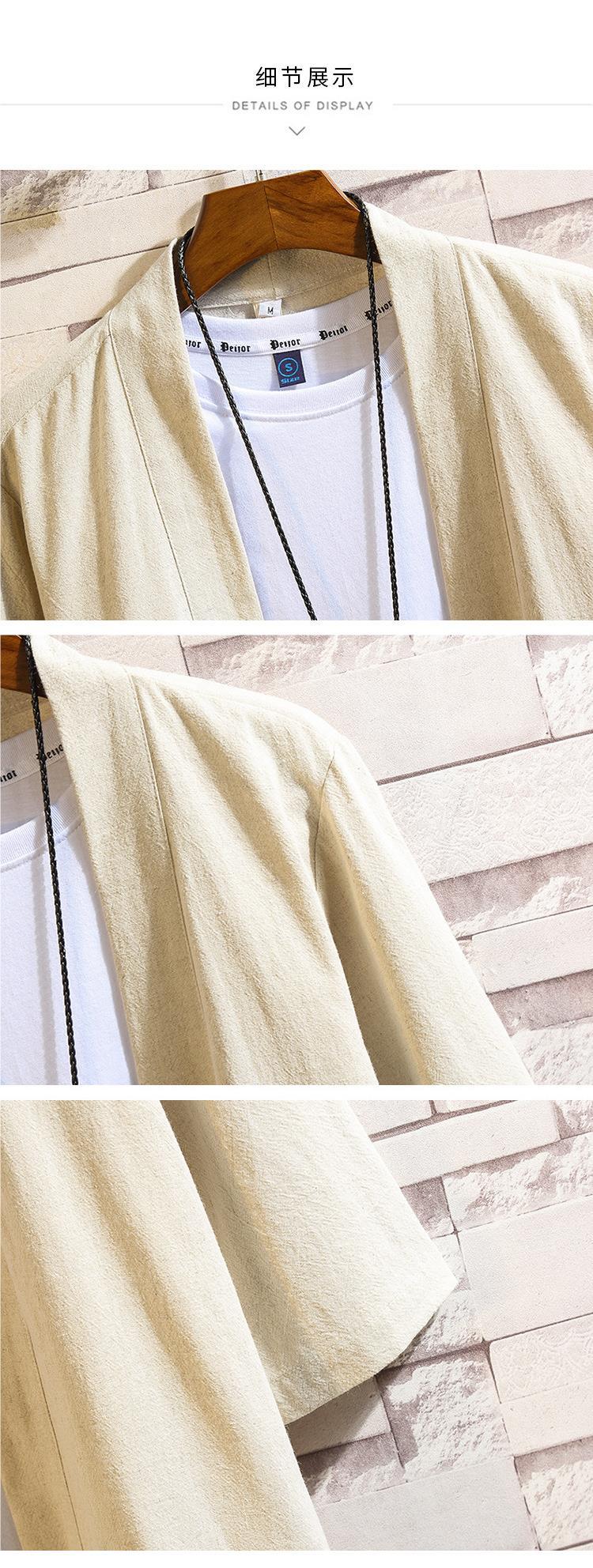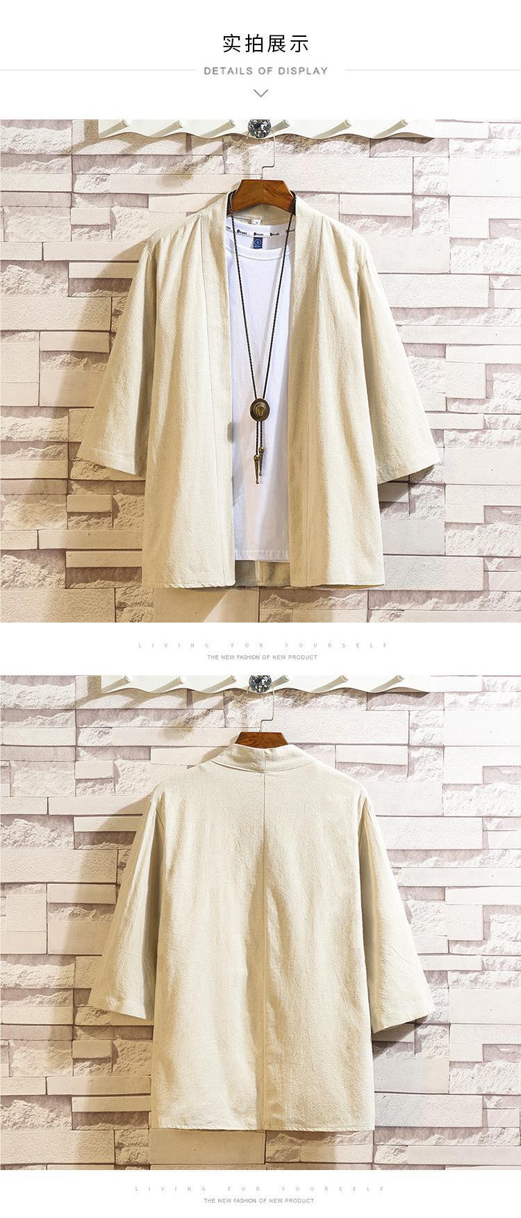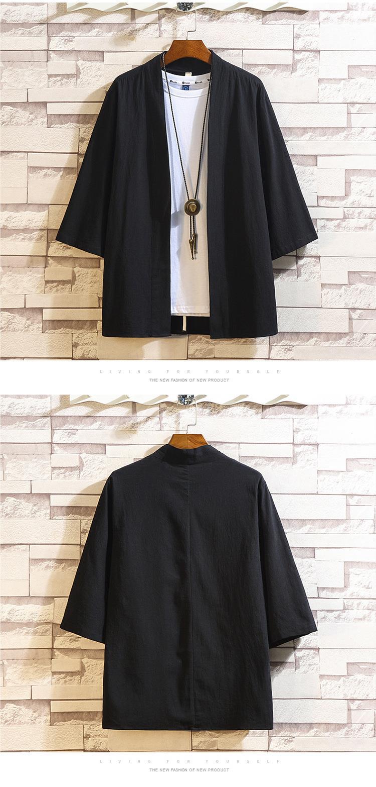 중국 스타일 여름 새로운 도착 남자의 느슨한 단색 한푸 카디건 셔츠 대형 유행 캐주얼 코튼 리넨 7 점 소매