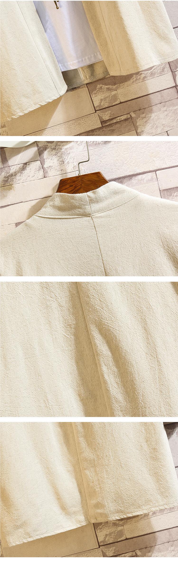 중국 스타일 여름 새로운 도착 남자의 느슨한 단색 한푸 카디건 셔츠 대형 유행 캐주얼 코튼 리넨 7 점 소매스토어 가기