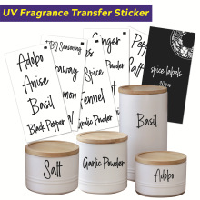 亚马逊香料罐标签透明UV转印贴纸英文防水防油厨房调料瓶标签
