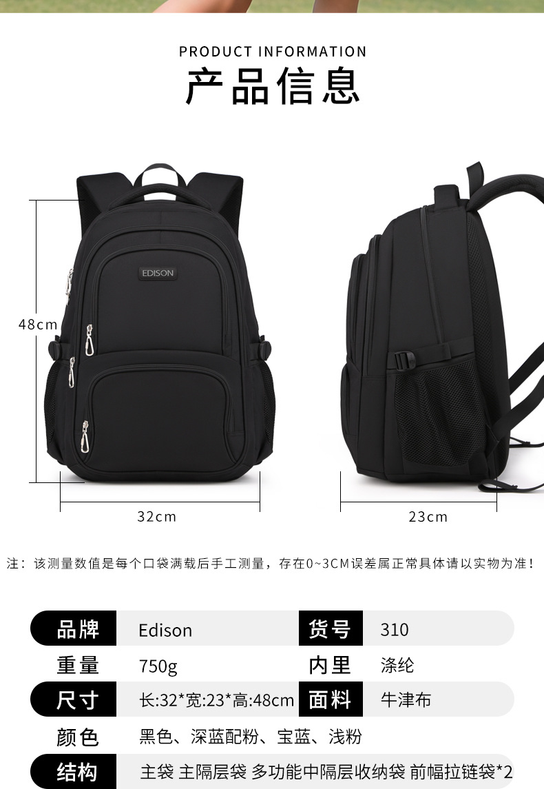 에디슨 에디슨 중학생 책가방 남성용 대용량 멀티 칸 고등학생 심플 백팩 310스토어 가기