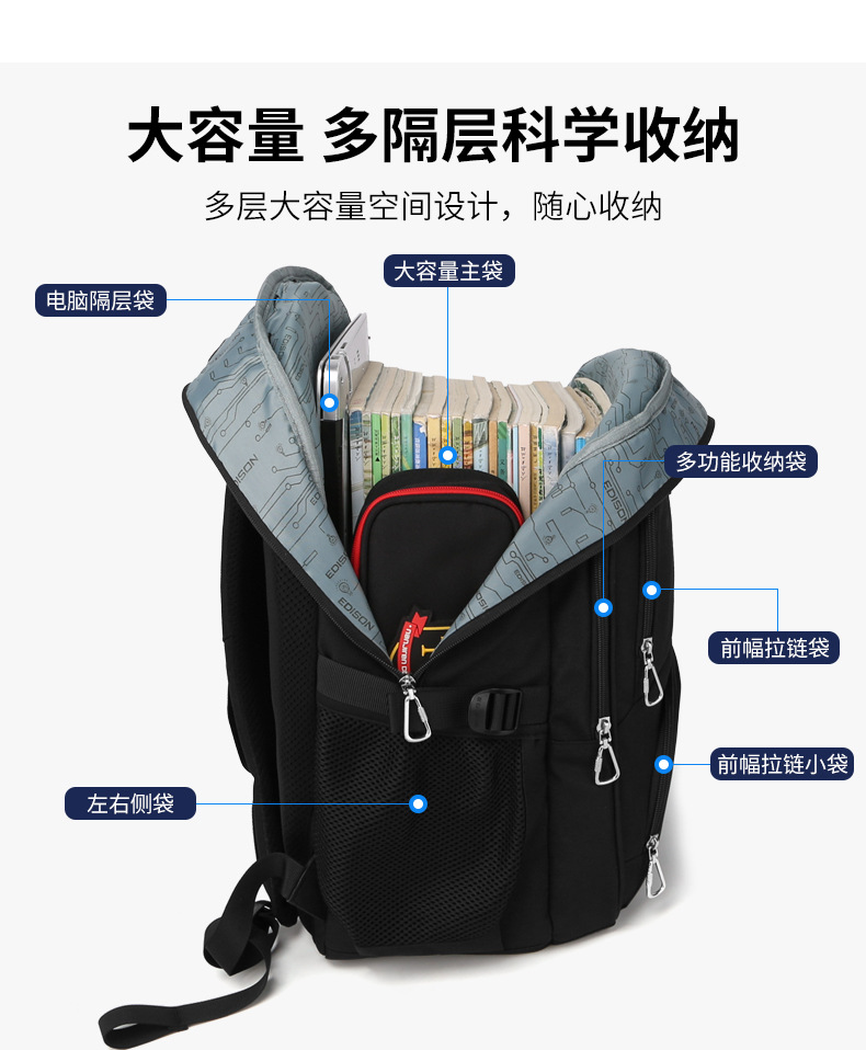 에디슨 에디슨 중학생 책가방 남성용 대용량 멀티 칸 고등학생 심플 백팩 310