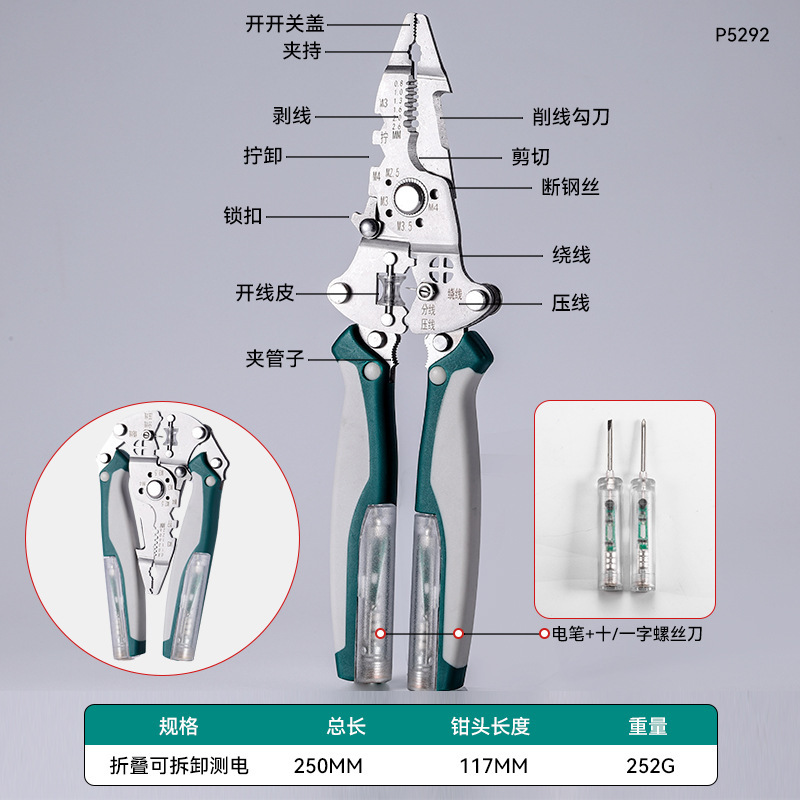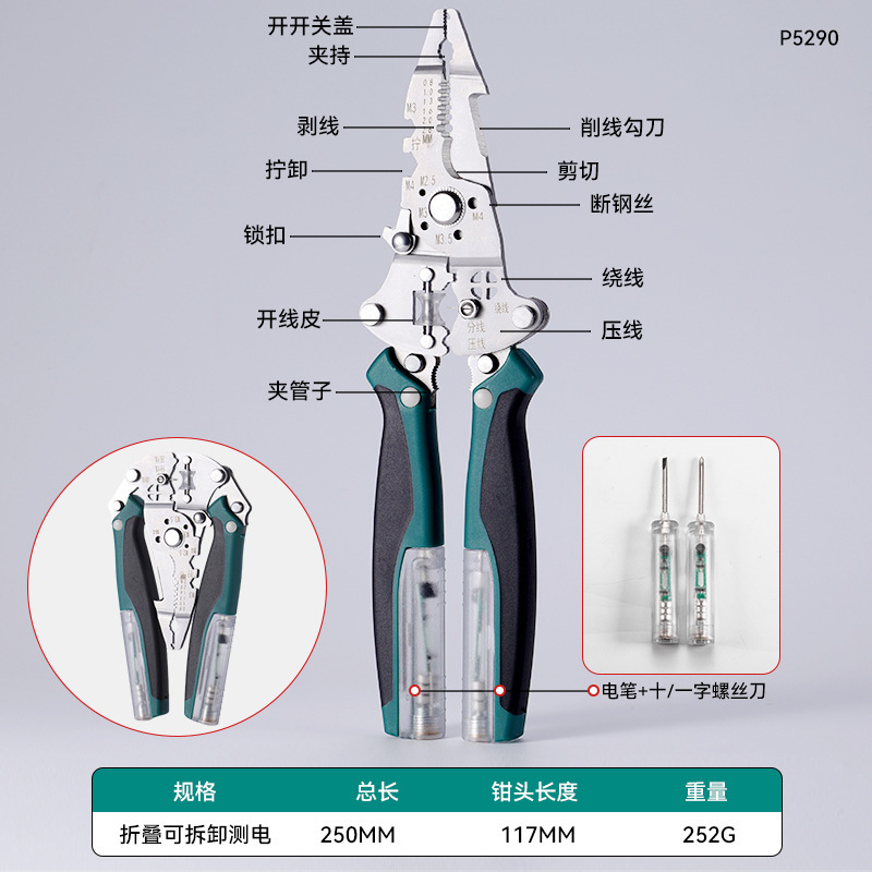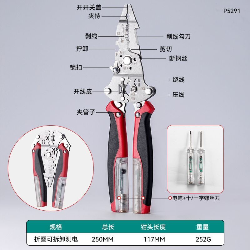 국경 간 펜치 공구 와이어 스트리퍼 산업 등급 전기 특수 7 인치 25 인치 1 와이어 절단 다기능 와이어 스트리퍼