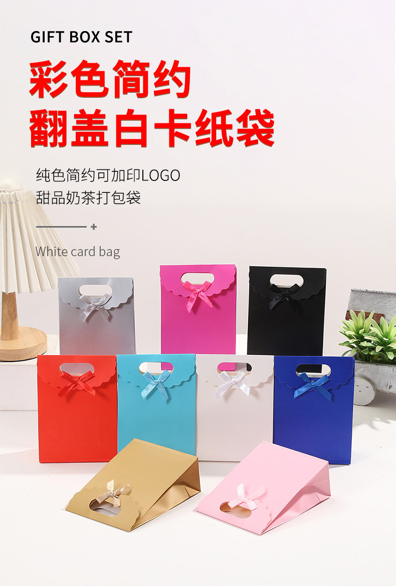 단색 흰색 골판지 가방 색상 간단한 인쇄 플립 가방 인쇄 가능한 로고 디저트 밀크 티 포장 가방스토어 가기
