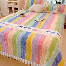 冬季爆款牛奶绒床盖三件套夹棉加厚榻榻米盖毯绗缝水晶绒花边床单