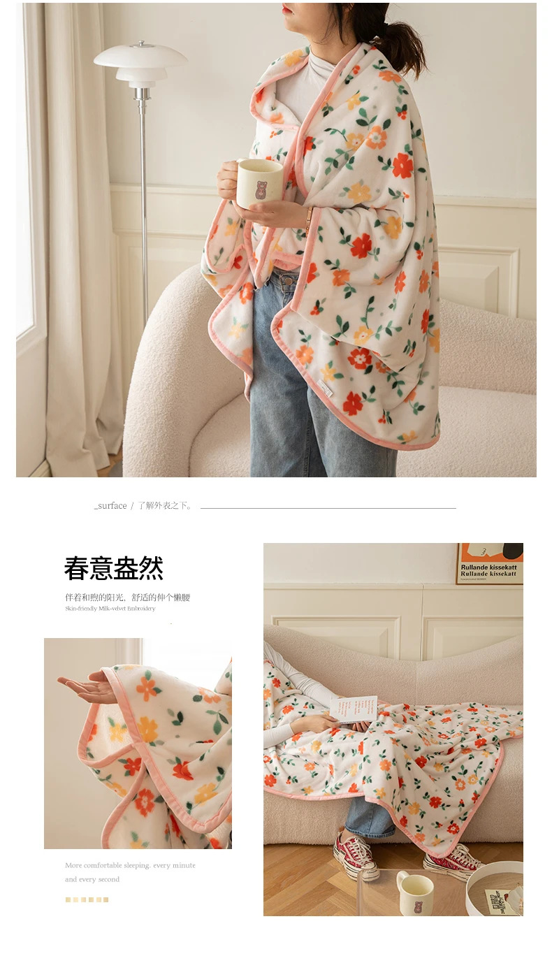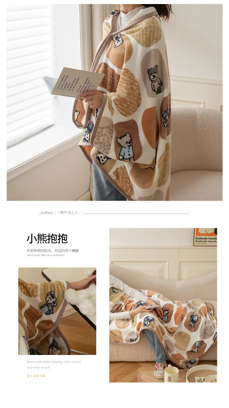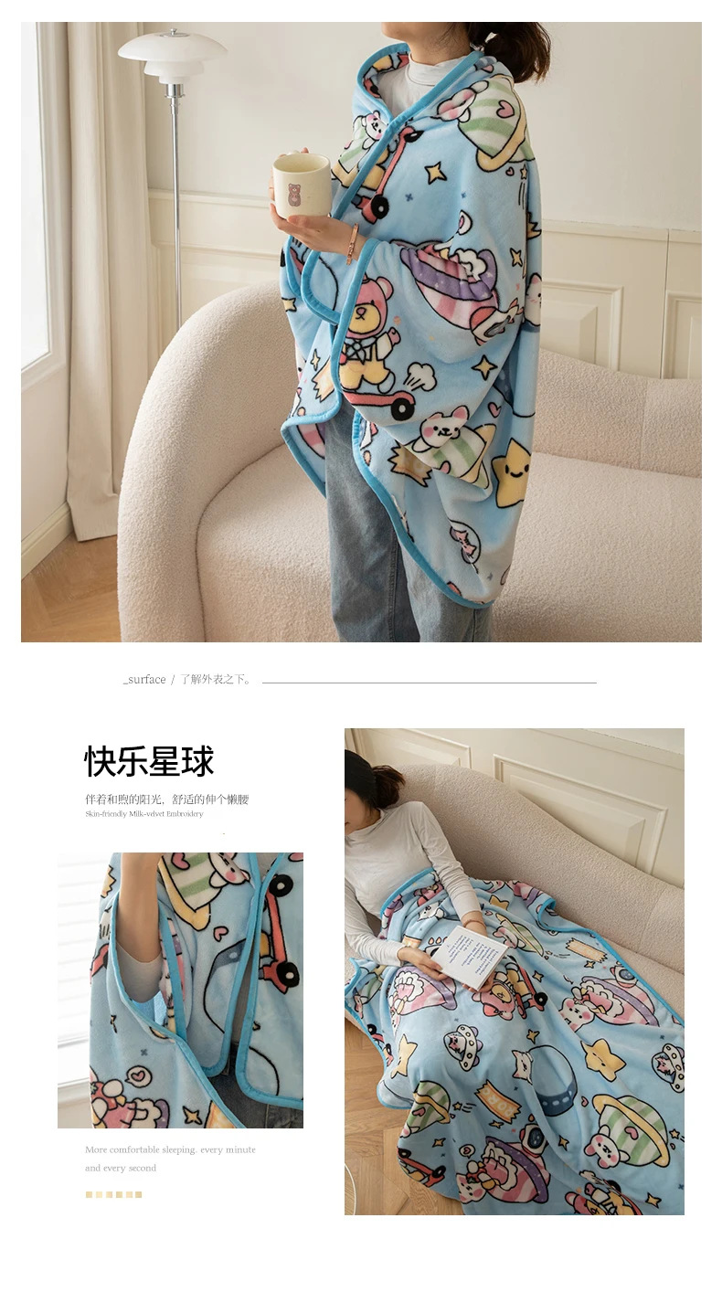 2025 봄 가을 신상품 다기능 밀크 벨벳 프린트 숄 담요 어린이 담요 커버 담요 도매 외국 무역 버튼 담요스토어 가기