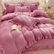 2023冬季新款韩式豆豆绒四件套纯色花边水晶绒被套公主风床品套件