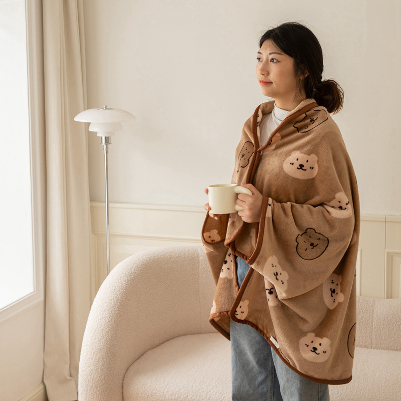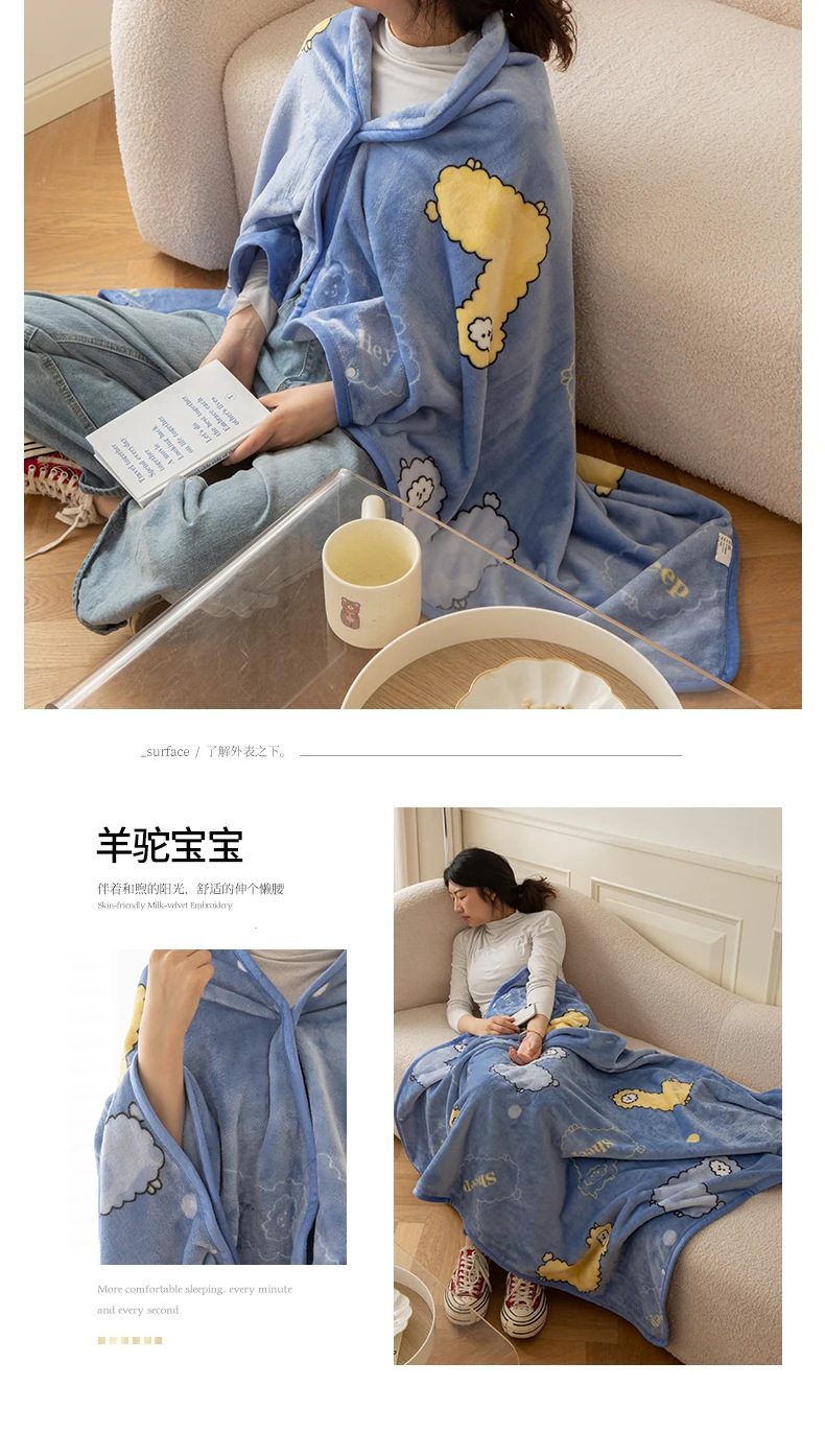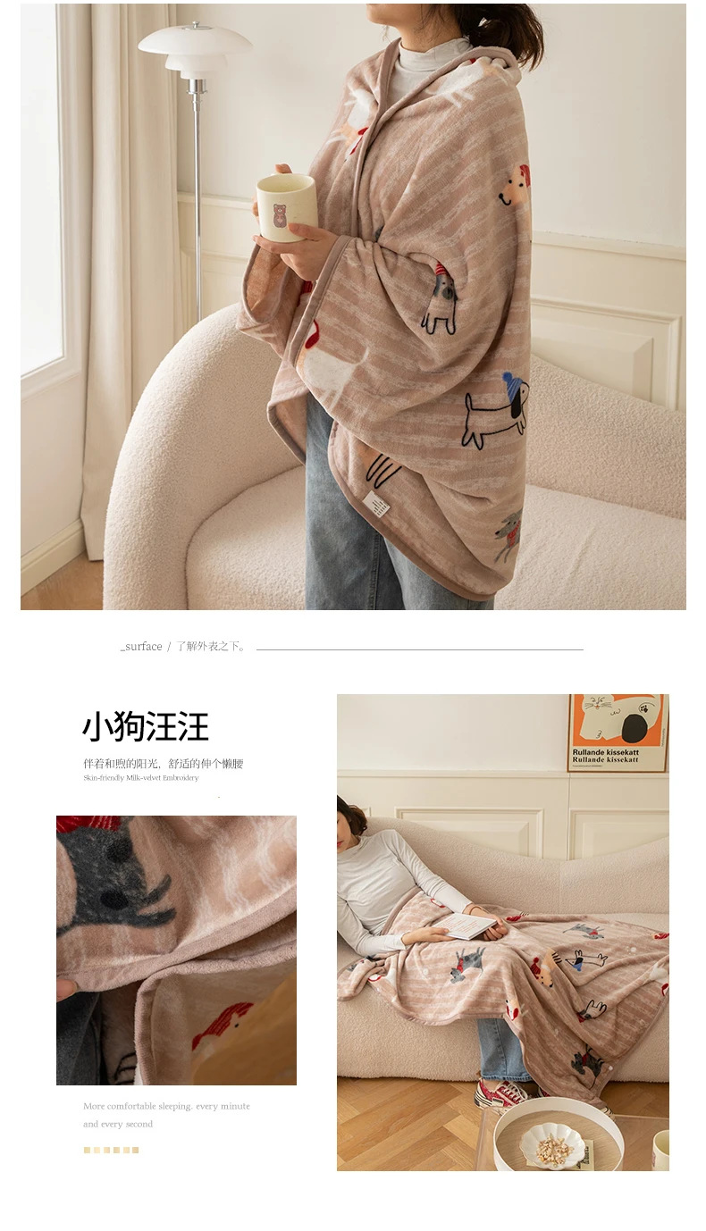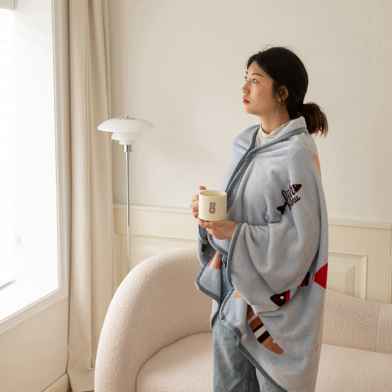 2025 봄 가을 신상품 다기능 밀크 벨벳 프린트 숄 담요 어린이 담요 커버 담요 도매 외국 무역 버튼 담요