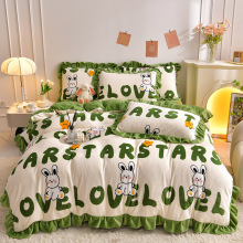 2023秋冬新款韩版标牛奶绒印花四件套纯色花边金貂绒套件被套床单