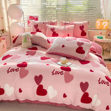 批发外贸冬季印花牛奶绒四件套跨境法兰绒卡通套件珊瑚绒床上用品