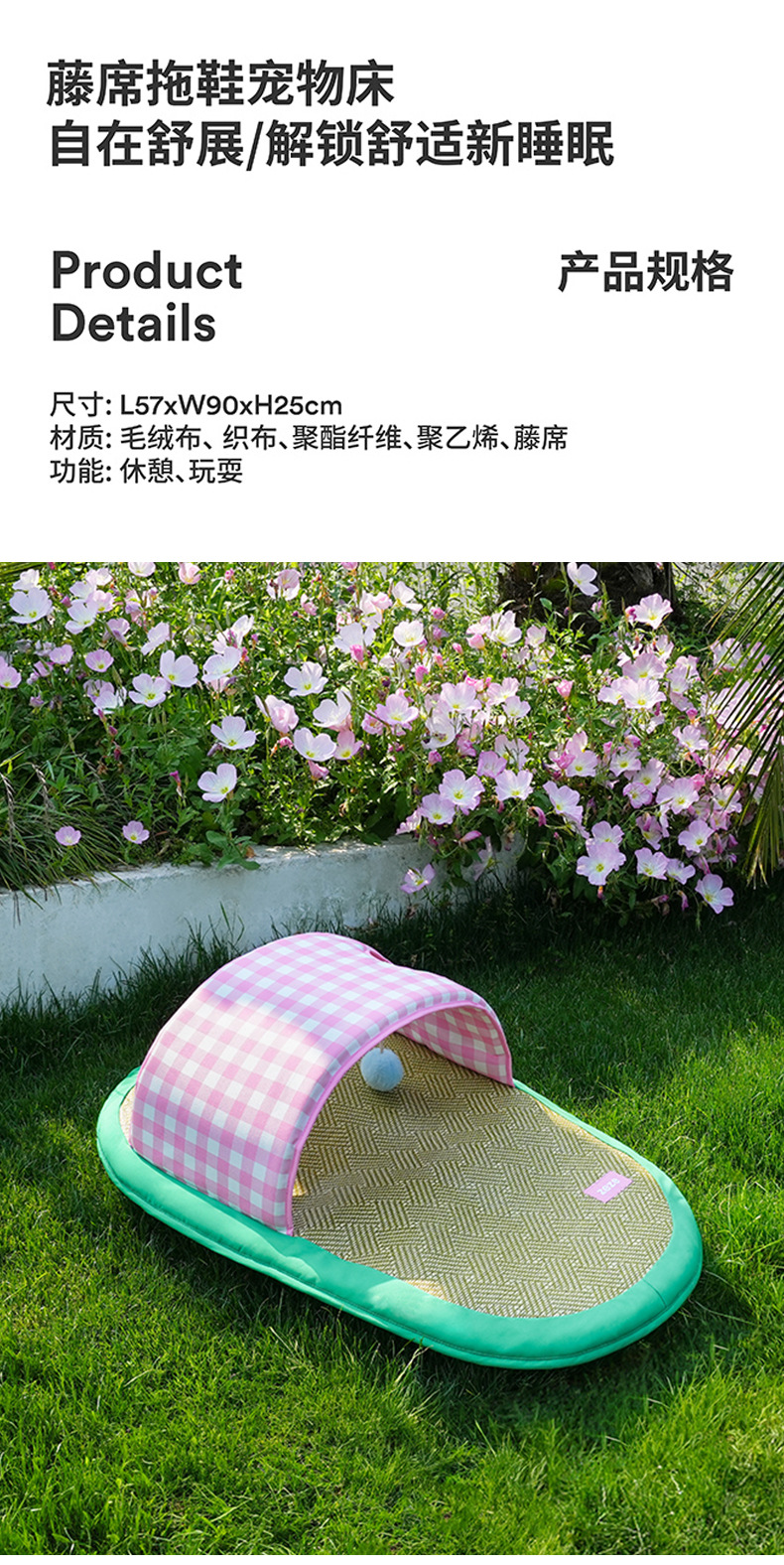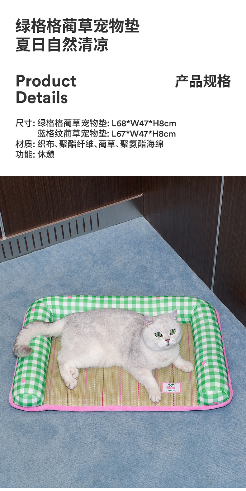 • 그린 그리드 펫 매트 L68*W47*H8cm