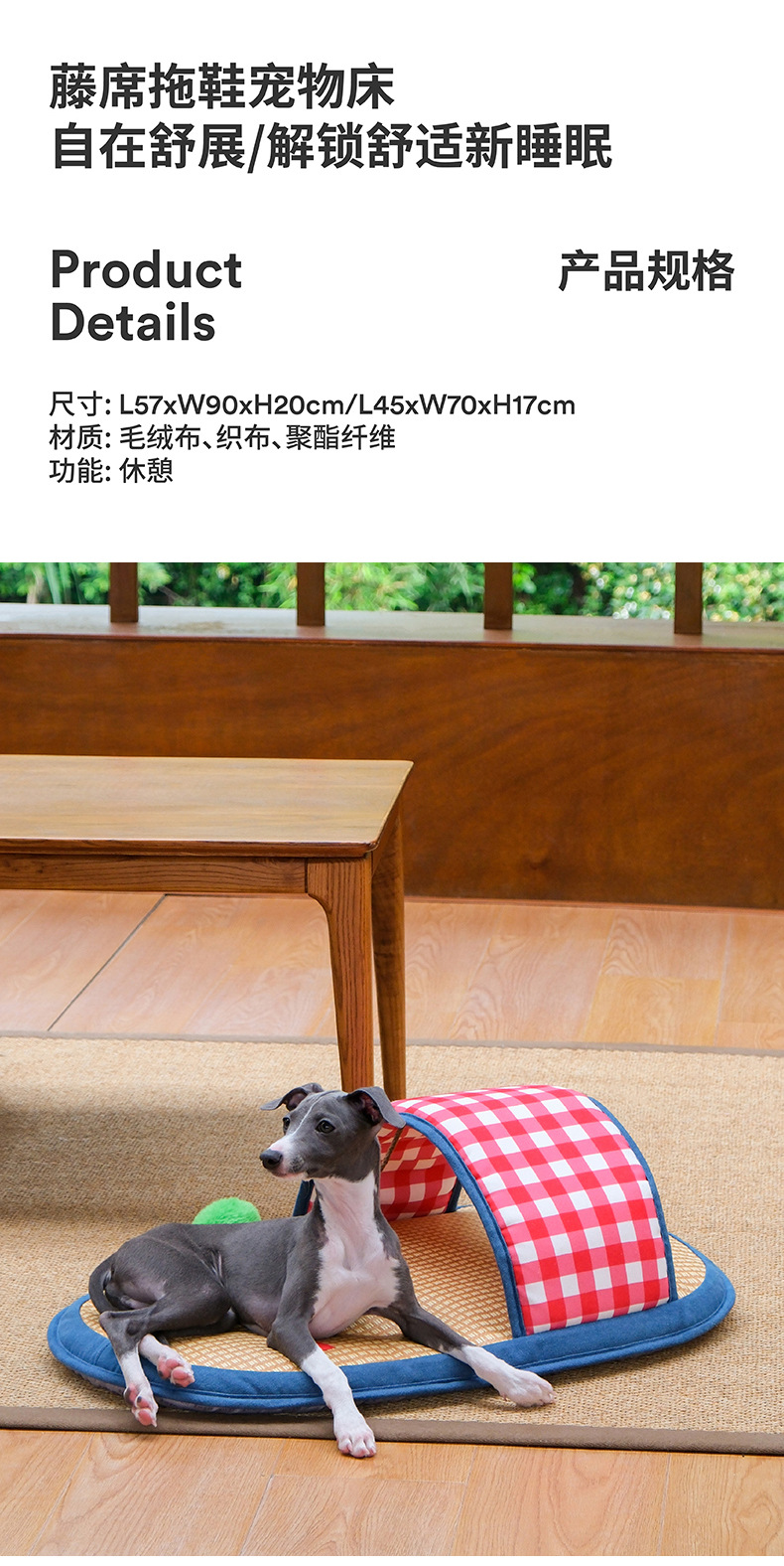 • 등나무매트 슬리퍼 애완동물 침대(대)