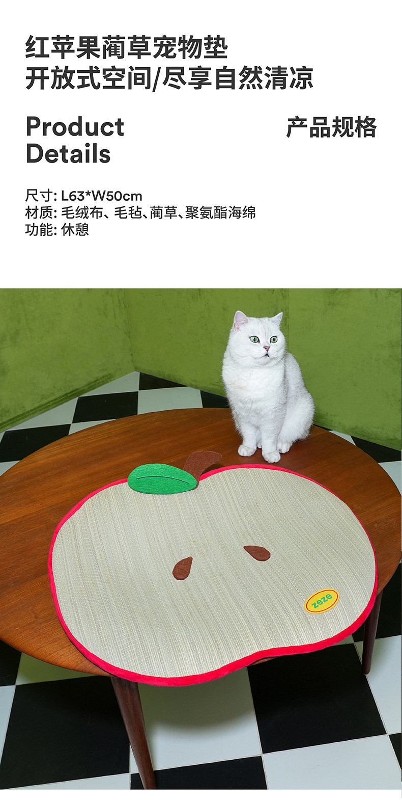 • 빨간 사과 러쉬 애완동물 패드