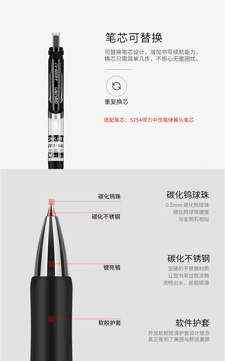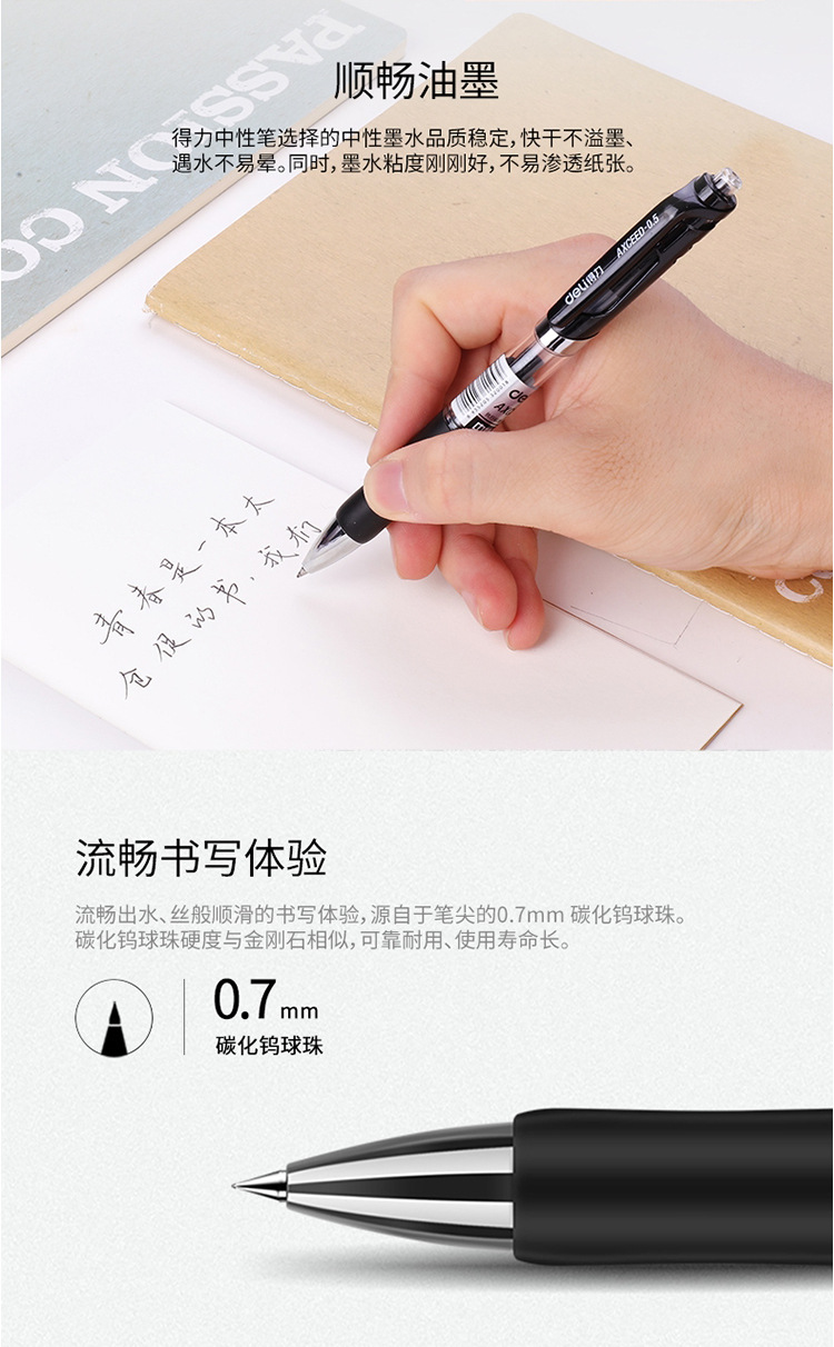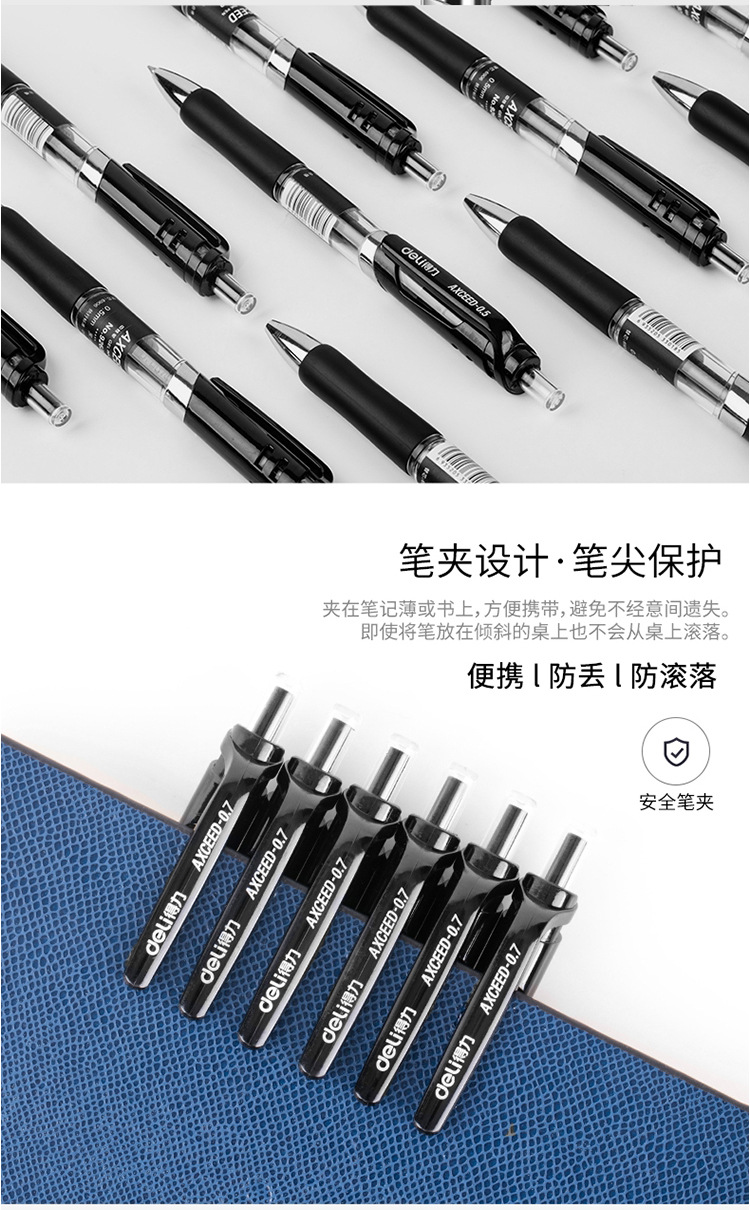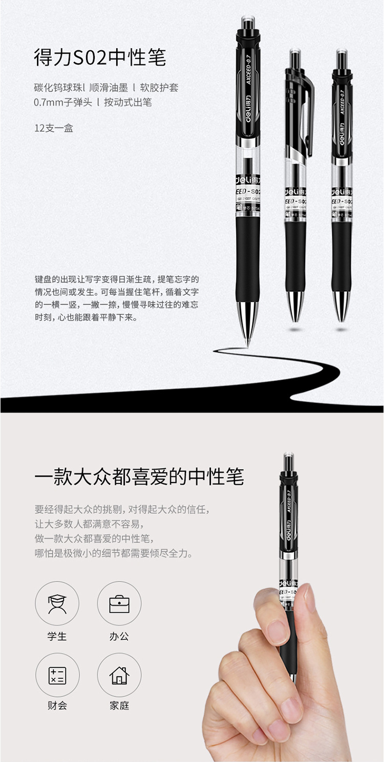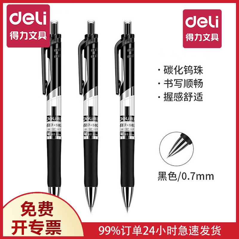델리 S02 젤 펜 0.7mm 사무용 서명펜 검정색 수성펜 클릭형 젤 펜 도매 학생용 필기펜