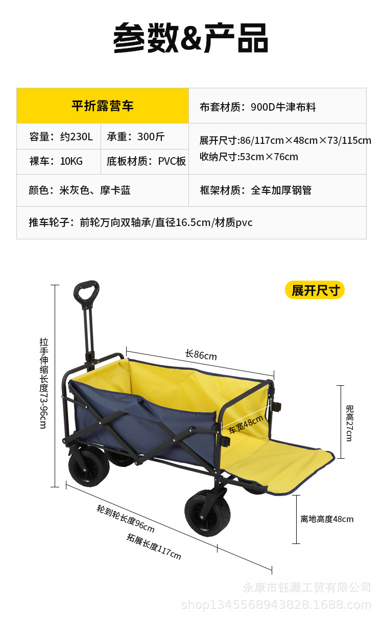 새로운 야외 캠핑카 접이식 캠핑 소형 트레일러 캠프 트롤리 경량 접이식 간단한 트롤리스토어 가기