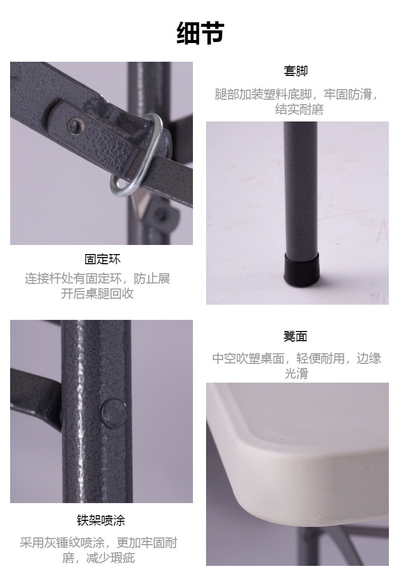 吹塑工艺,由高密度聚乙烯的塑料面板和喷涂铁架构成,环保材质,简约便捷,展开即用,方便收纳。