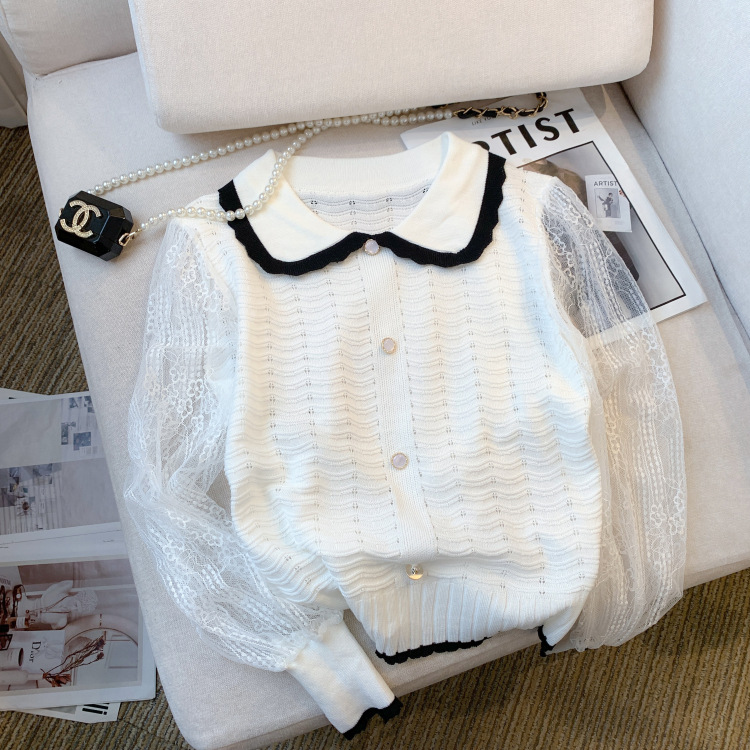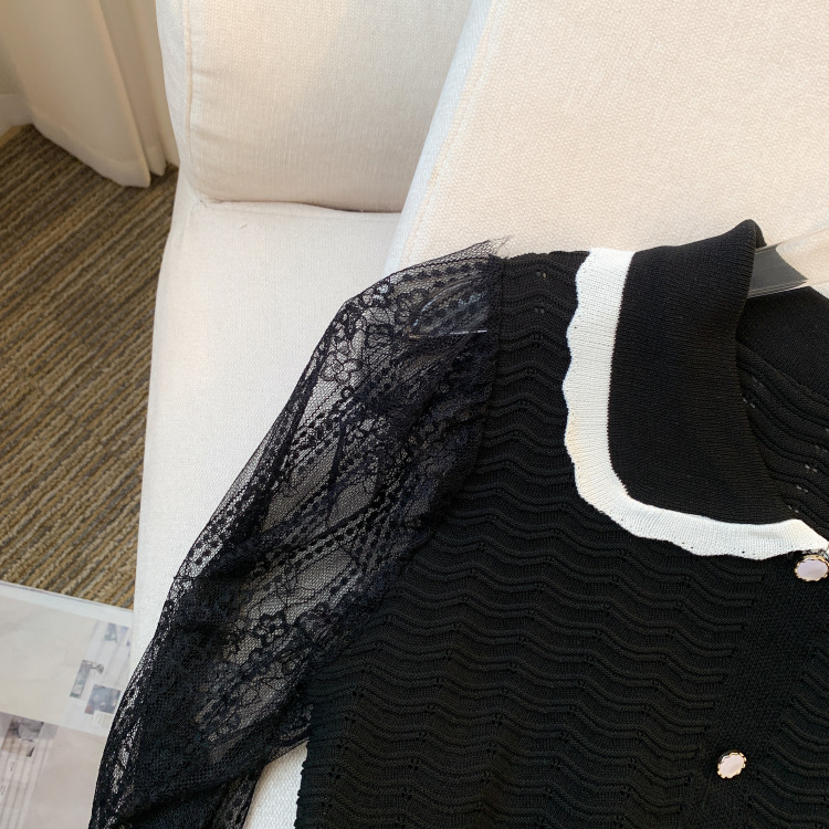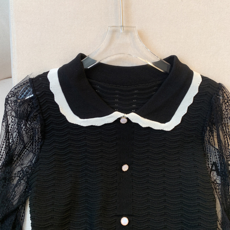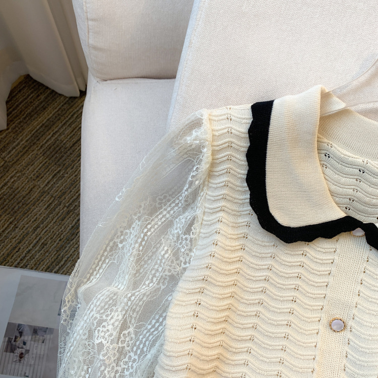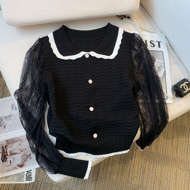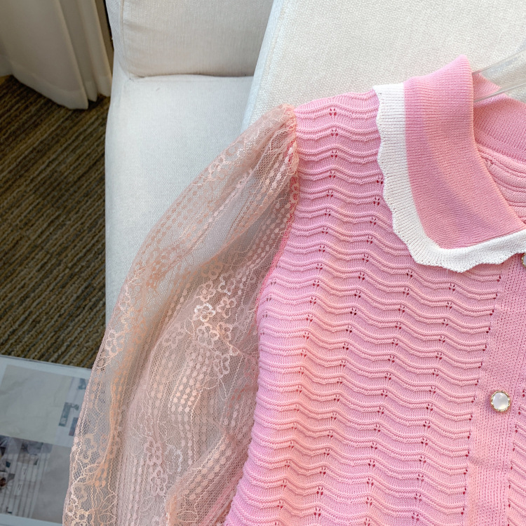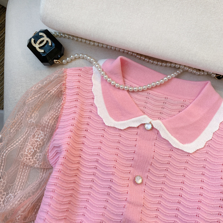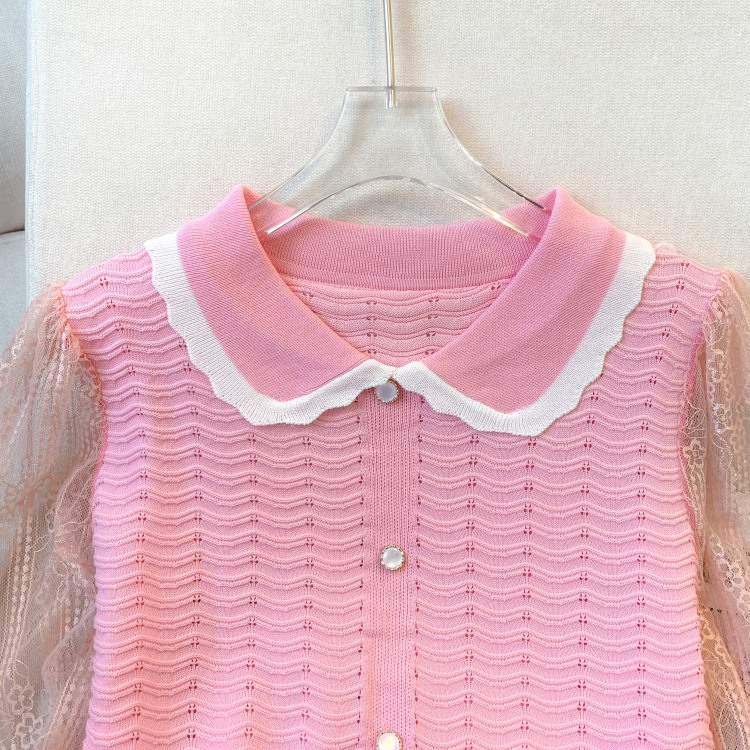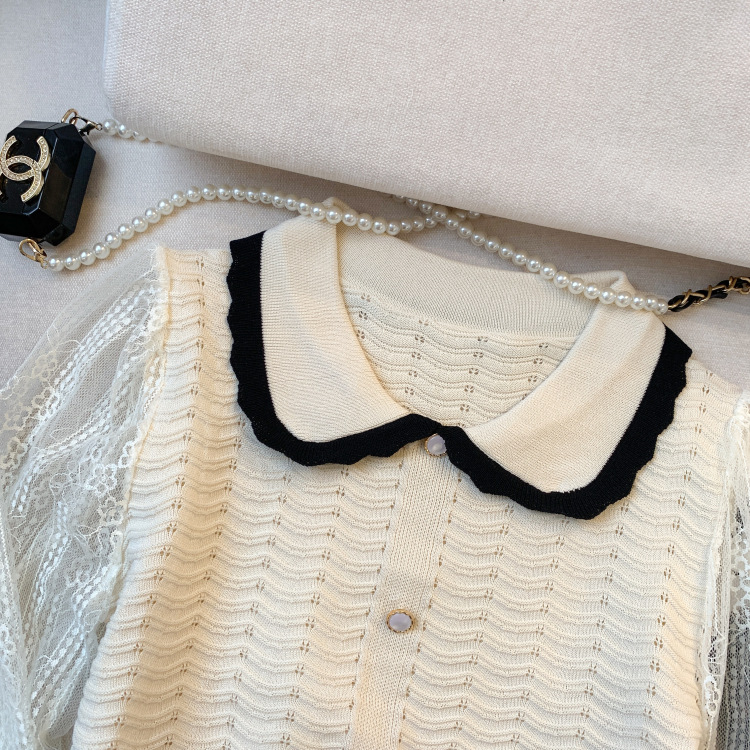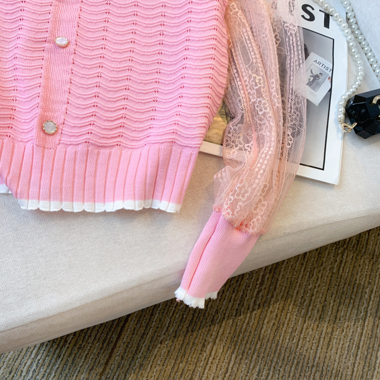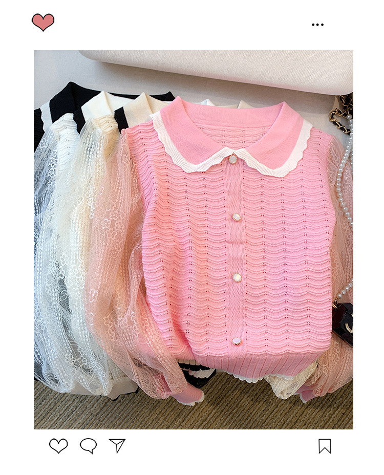 진짜 샷 재고 가을 새로운 한국 스타일 달콤한 우아한 쉬폰 스티칭 탑 세련된 스웨터