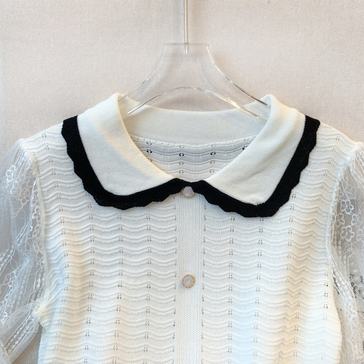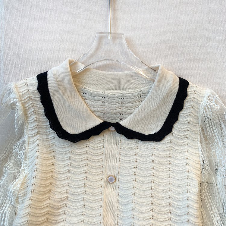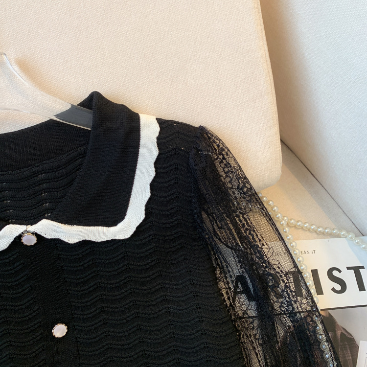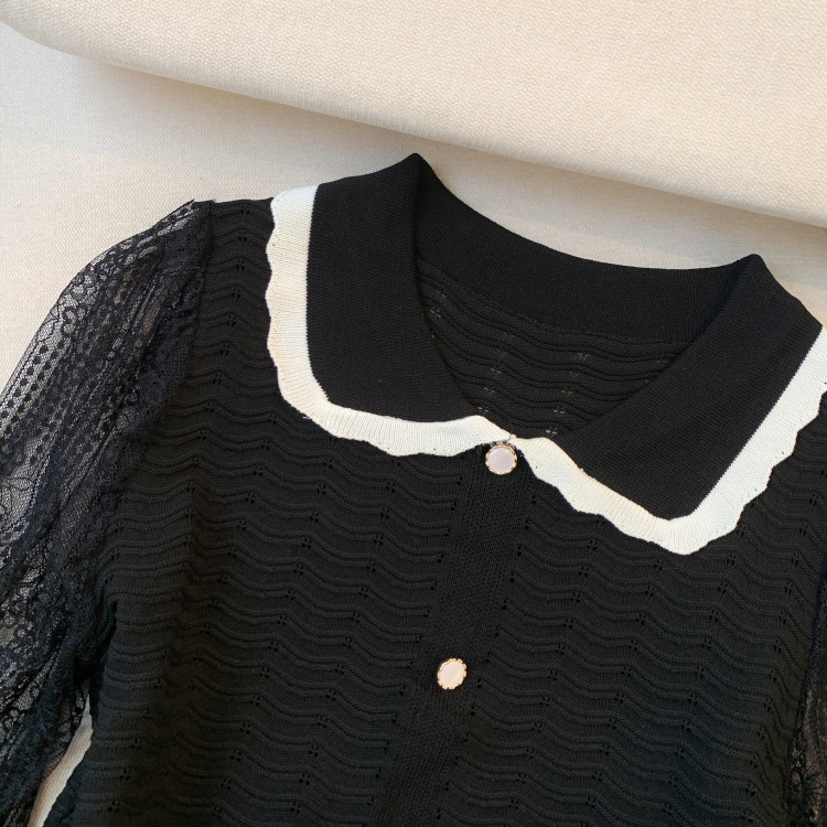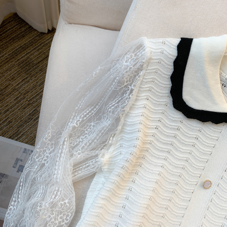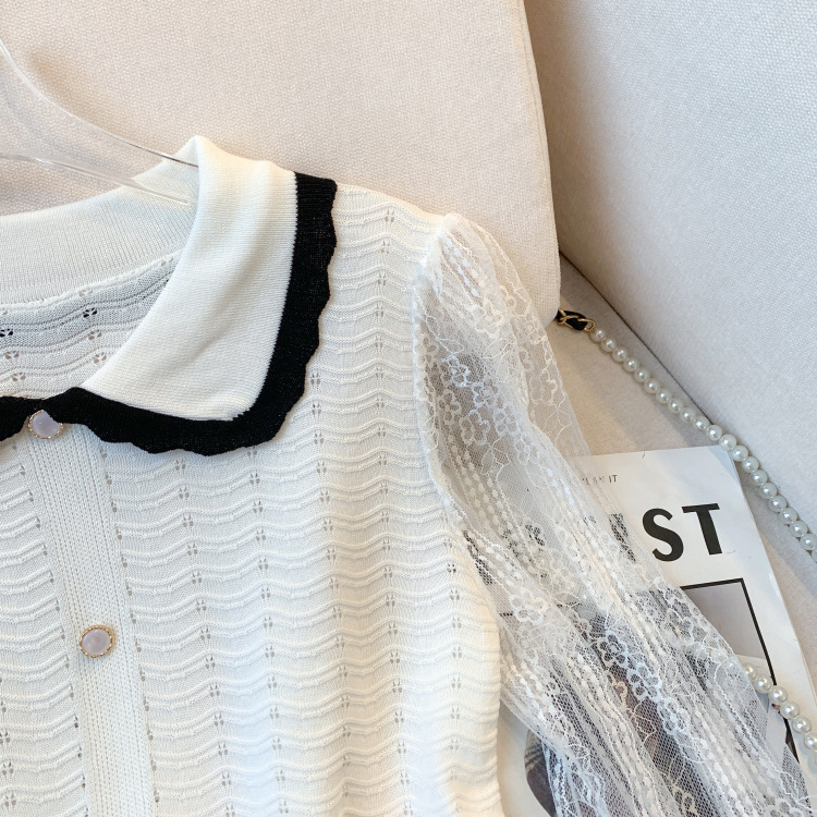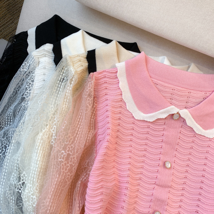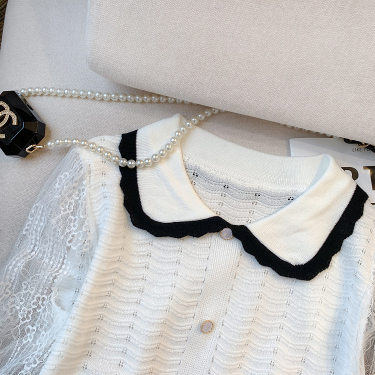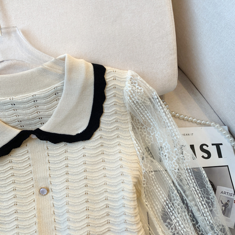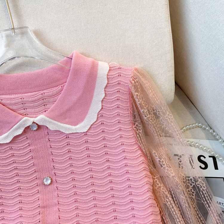진짜 샷 재고 가을 새로운 한국 스타일 달콤한 우아한 쉬폰 스티칭 탑 세련된 스웨터