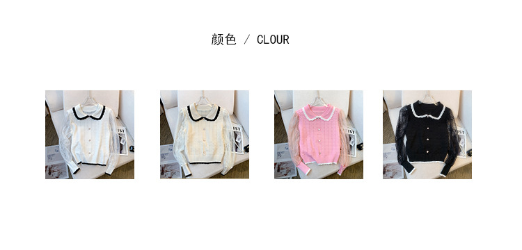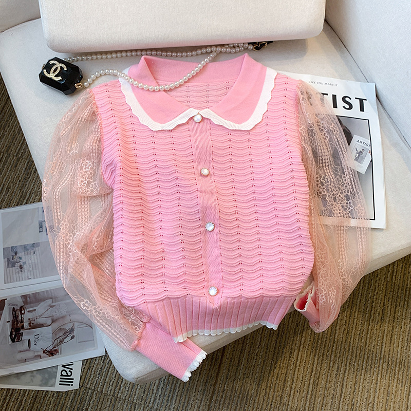 진짜 샷 재고 가을 새로운 한국 스타일 달콤한 우아한 쉬폰 스티칭 탑 세련된 스웨터스토어 가기
