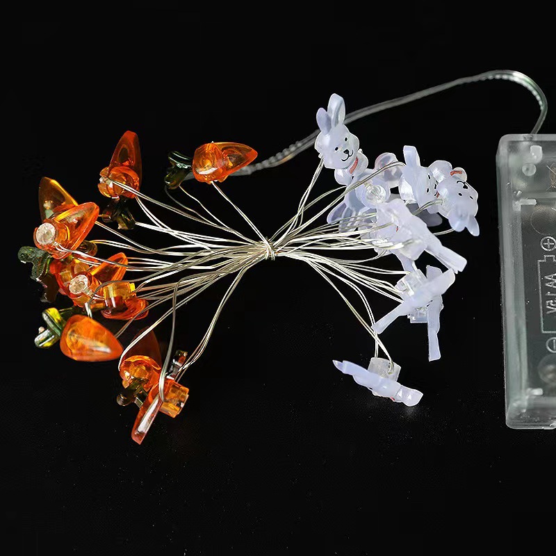 도매 LED 부활절 토끼 당근 병아리 달걀 모양 구리 와이어 램프 장식 조명