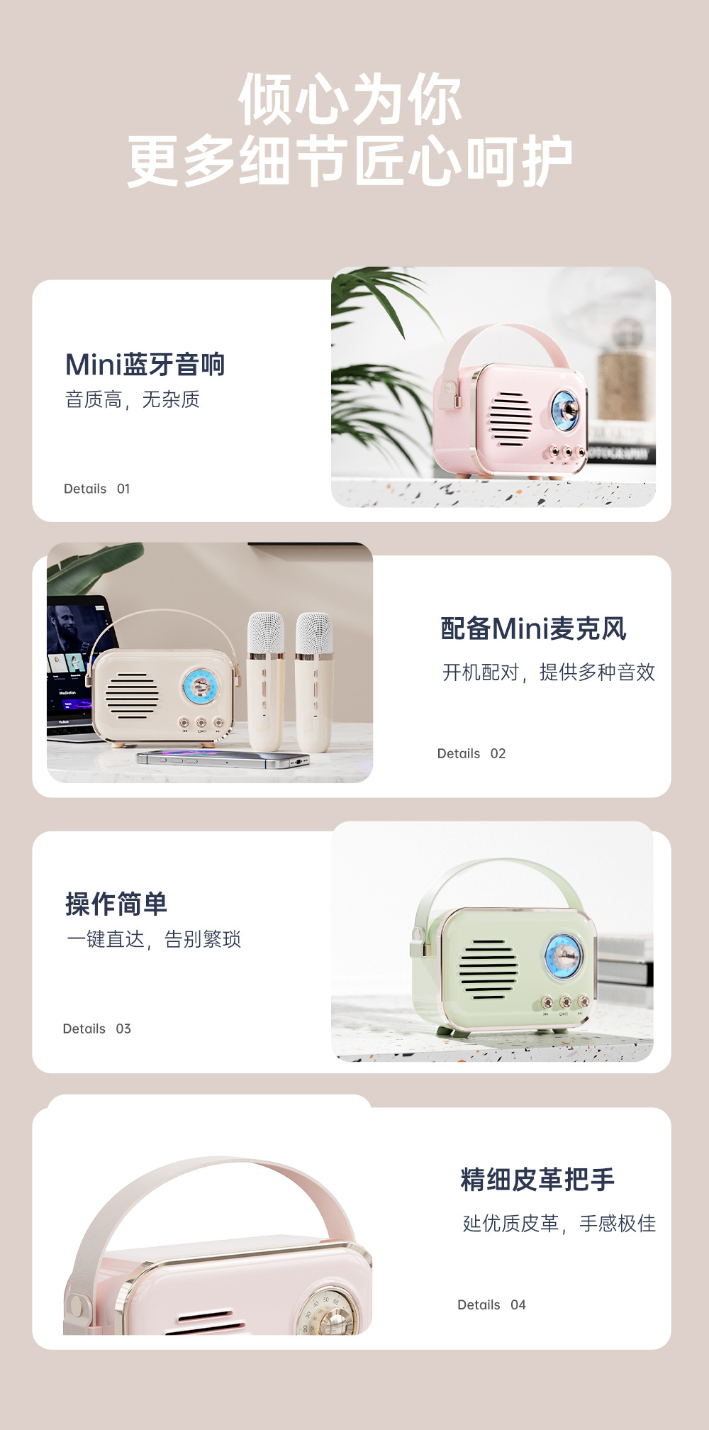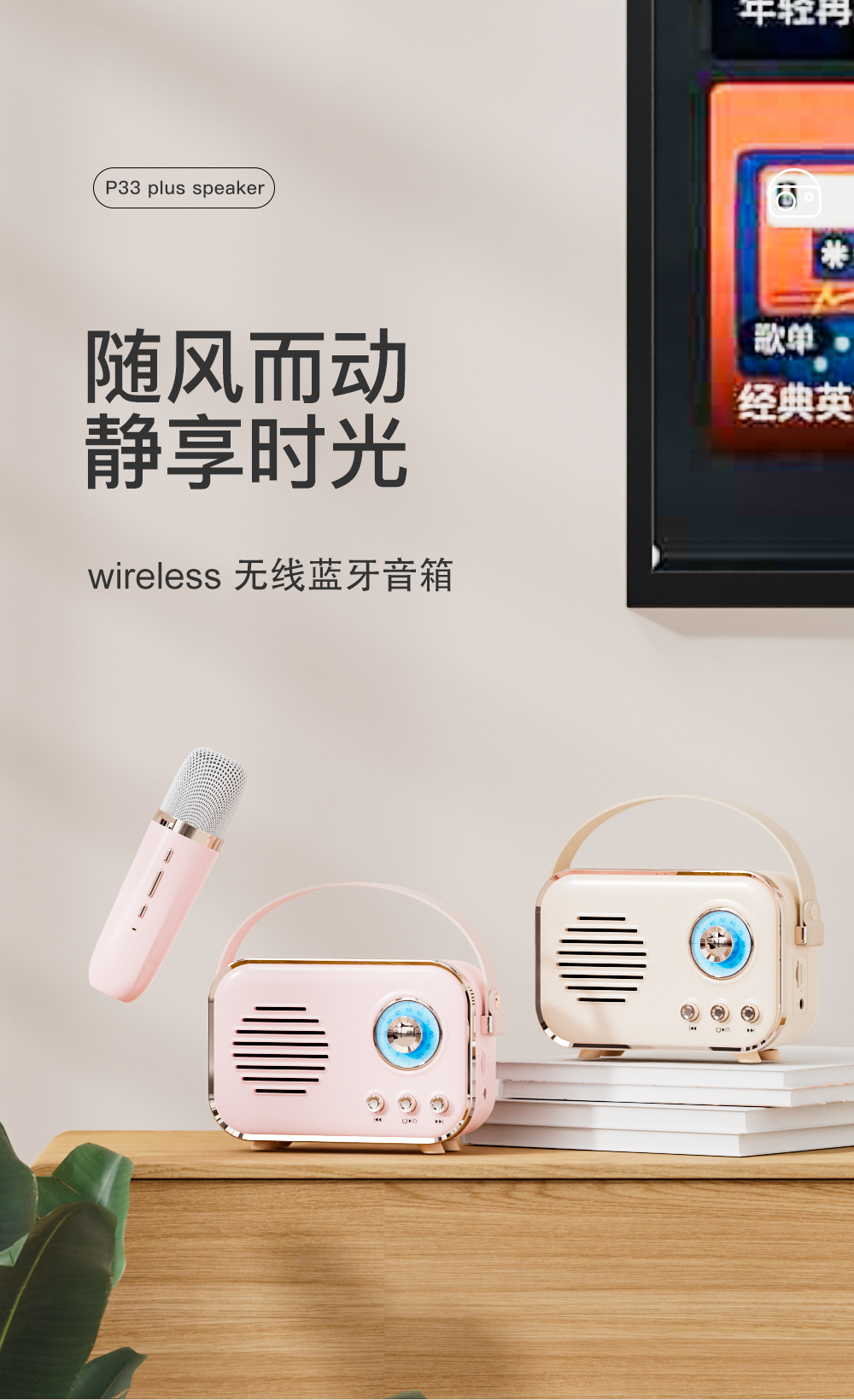 새로운 무선 마이크 블루투스 스피커 레트로 야외 노래방 오디오 올인원 휴대용 어린이 오디오 도매스토어 가기