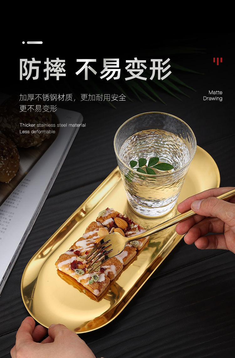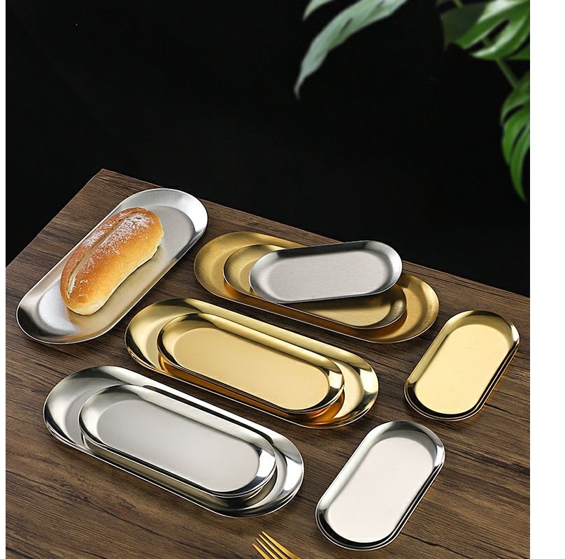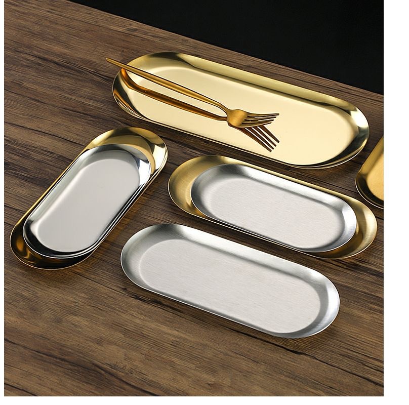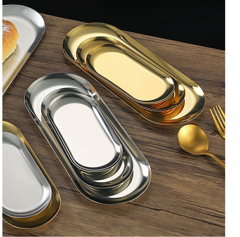 한국식 스테인리스 골드 타원형 접시 보석 보관 금속 트레이 서양식 애프터눈 티 스낵 트레이 수납 트레이