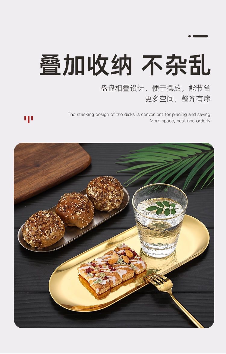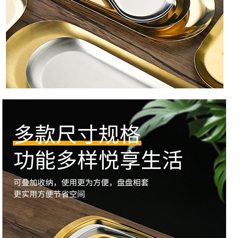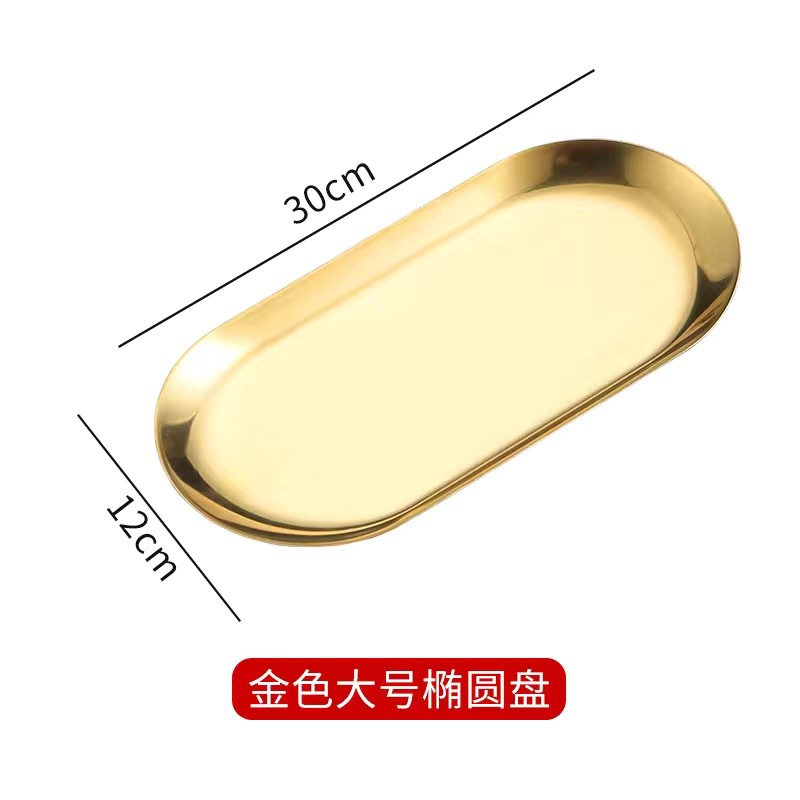 한국식 스테인리스 골드 타원형 접시 보석 보관 금속 트레이 서양식 애프터눈 티 스낵 트레이 수납 트레이스토어 가기