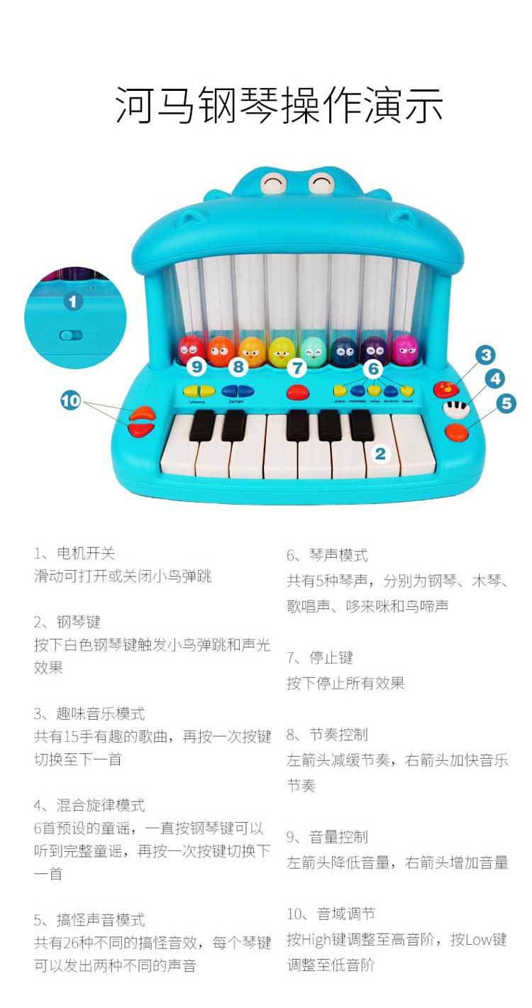 담즙 B. 토이즈 하마 피아노 아기 어린이 전자 오르간 연주와 노래 토이 교향곡 계몽 인기 작은 악기스토어 가기