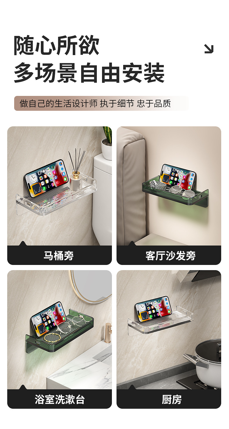 화장실 벽걸이 형 전화 랙 펀치 프리 화장실 티슈 랙 욕실 화장품 수납 랙 주방 수납 랙