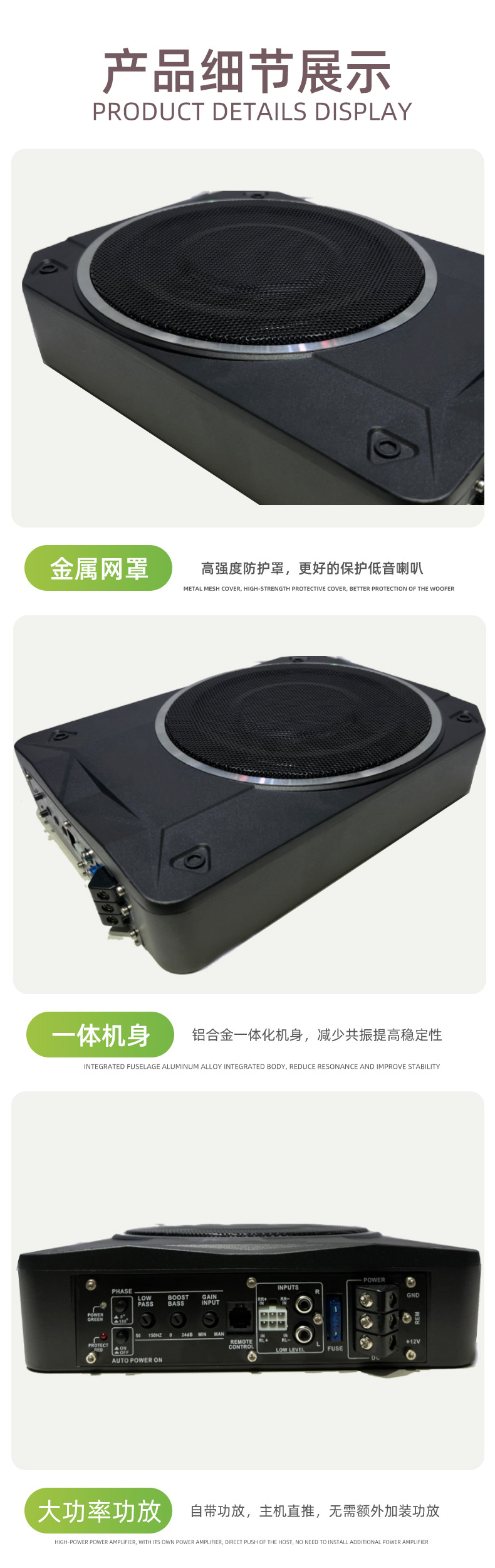 도매 직접 공급 10 인치 고출력 초박형 서브 우퍼 12v 순수한베이스 800w 자동차 좌석 바닥 오디오스토어 가기