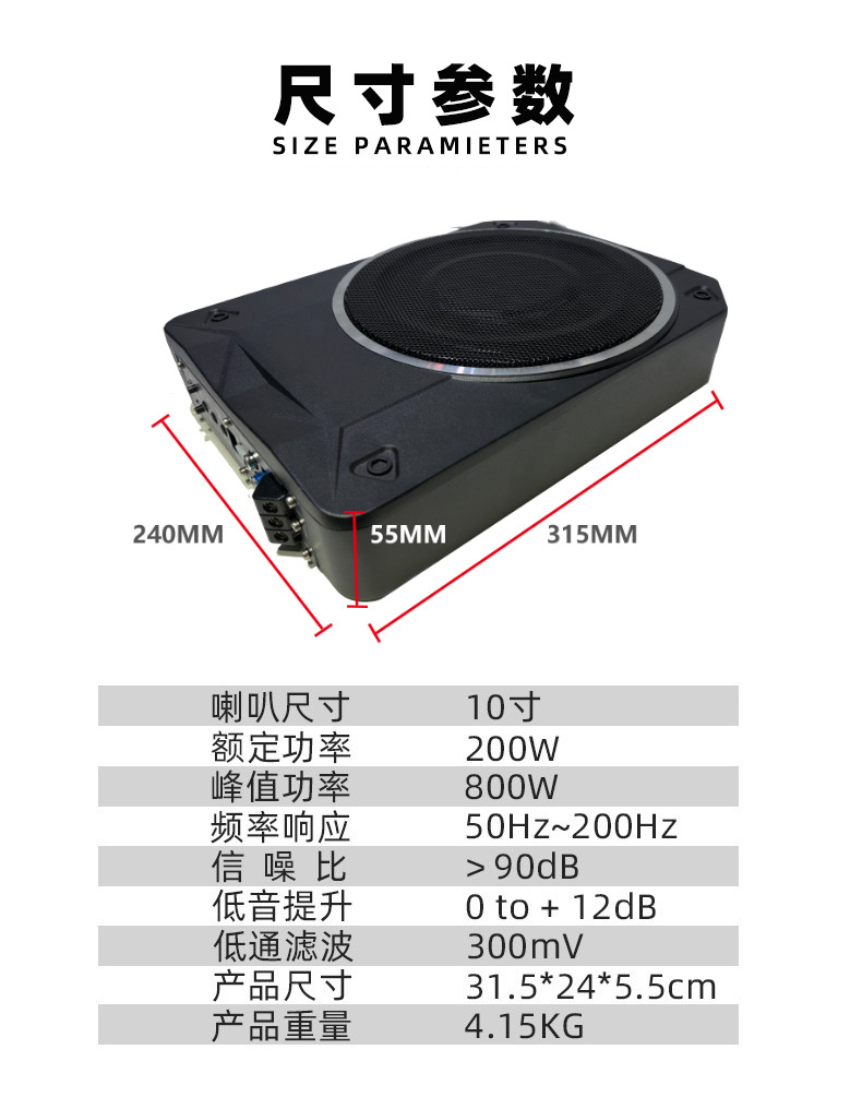 도매 직접 공급 10 인치 고출력 초박형 서브 우퍼 12v 순수한베이스 800w 자동차 좌석 바닥 오디오