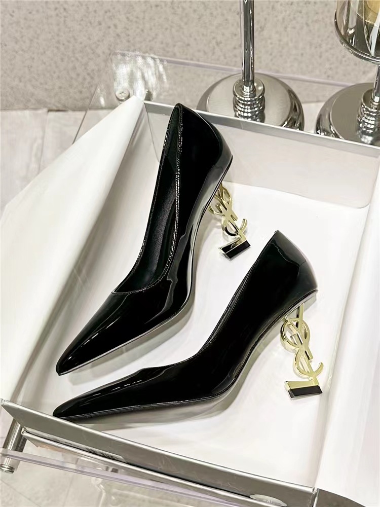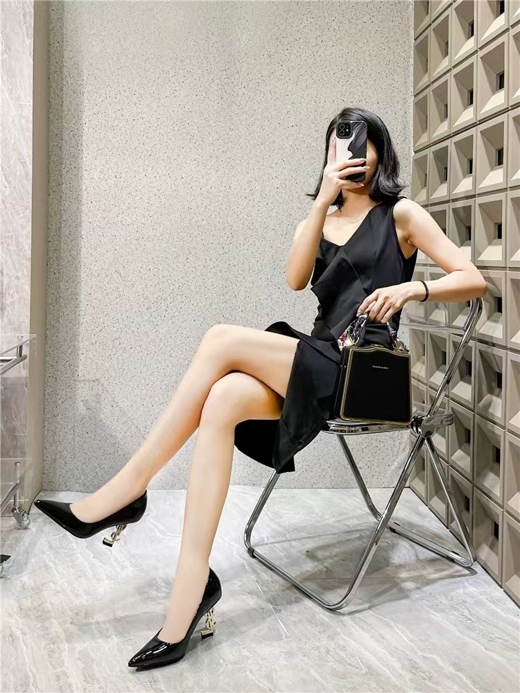 레터 힐 신발 여성 가을 2023 새로운 블랙 에나멜 가죽 스틸레토 힐 섹시한 침대 유혹 사이버 연예인 신발스토어 가기