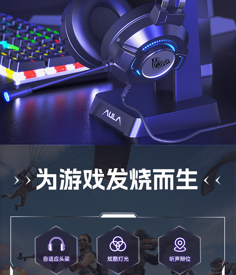 AULA/타란툴라 S602 헤드셋 7.1 채널 전자 스포츠 게임 치킨 헤드셋 유선 데스크톱 컴퓨터 헤드셋스토어 가기