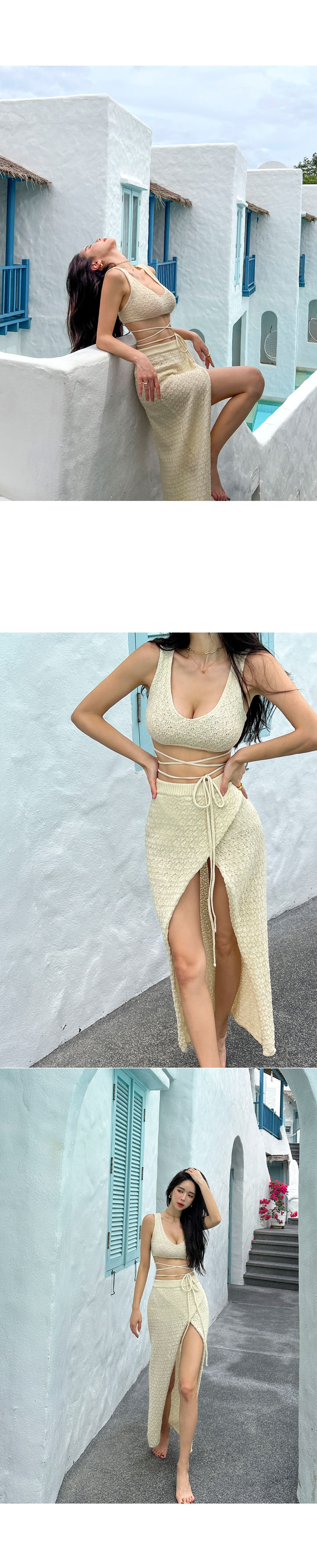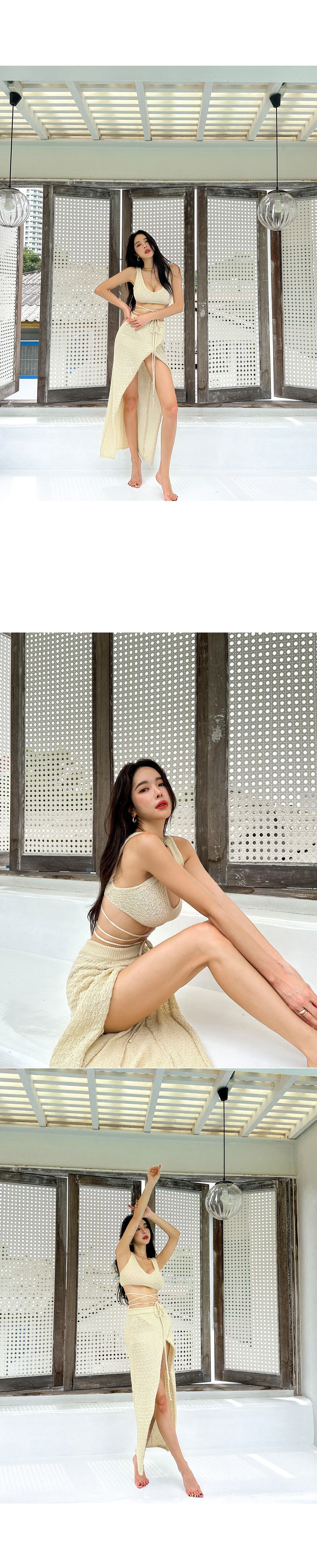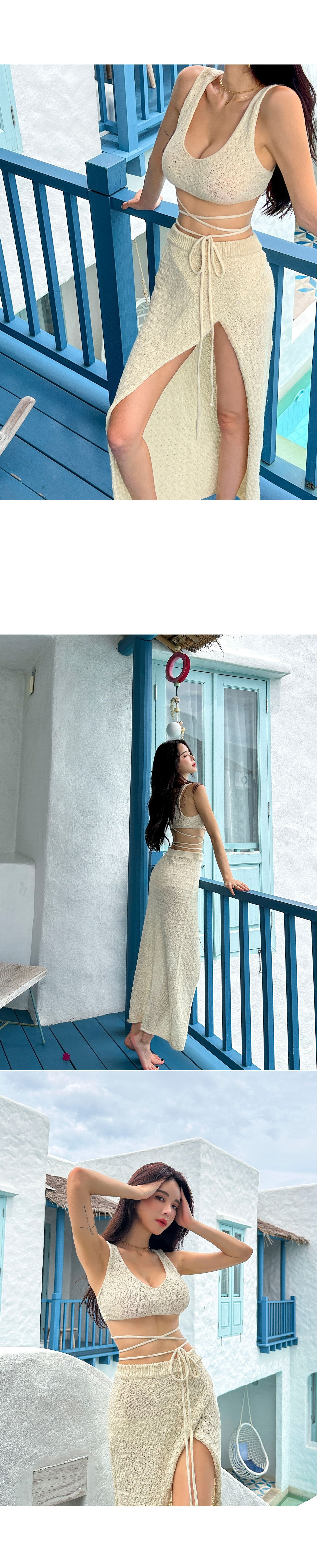 2024 새로운 니트 스플릿 수영복 여성 한국어 스타일 ins 스타일 심플 솔리드 컬러 비키니 3 피스 세트 + 비치 스커트