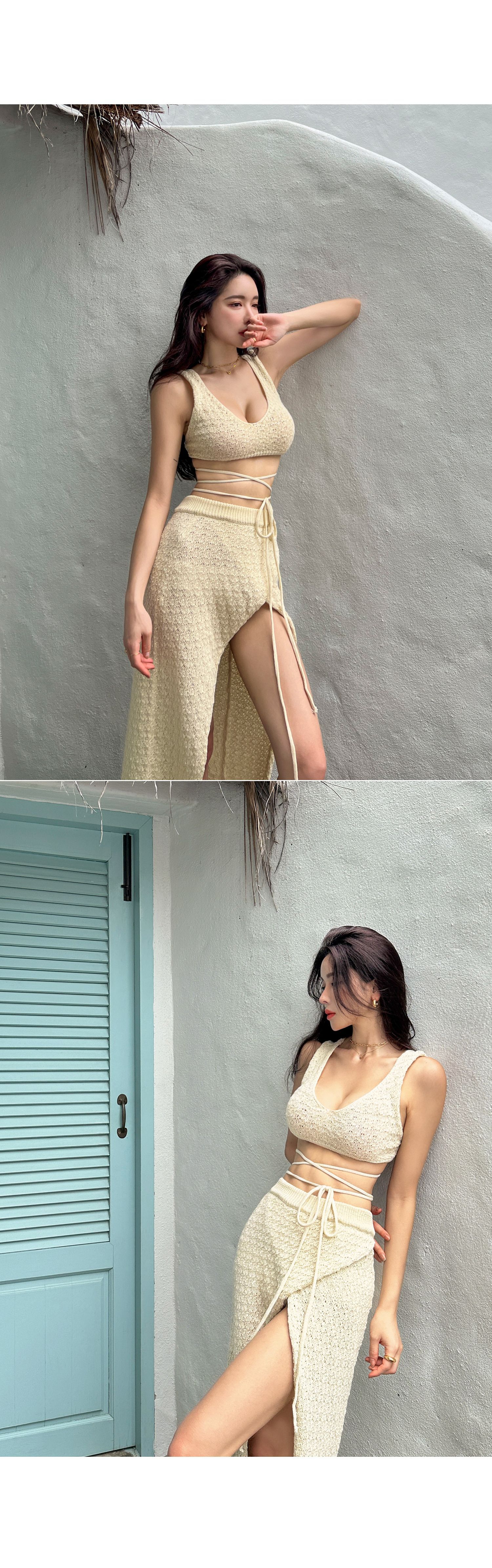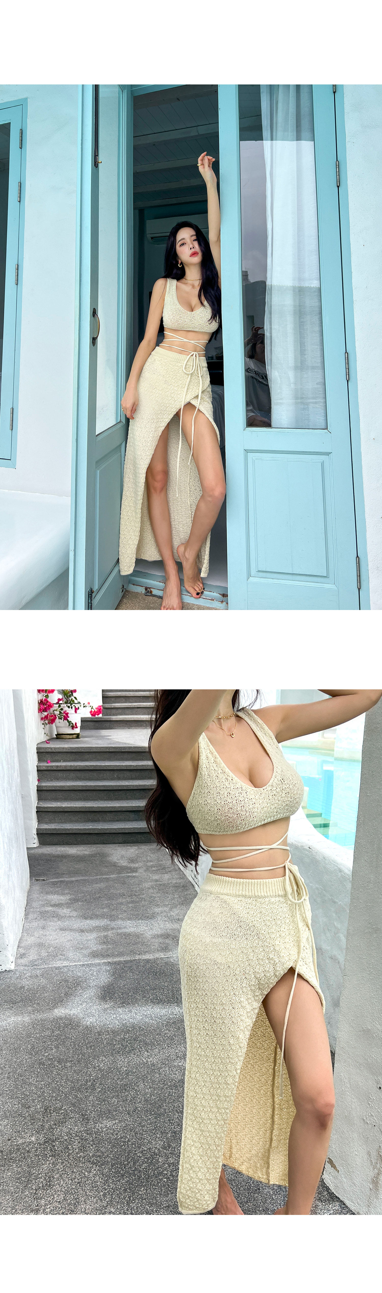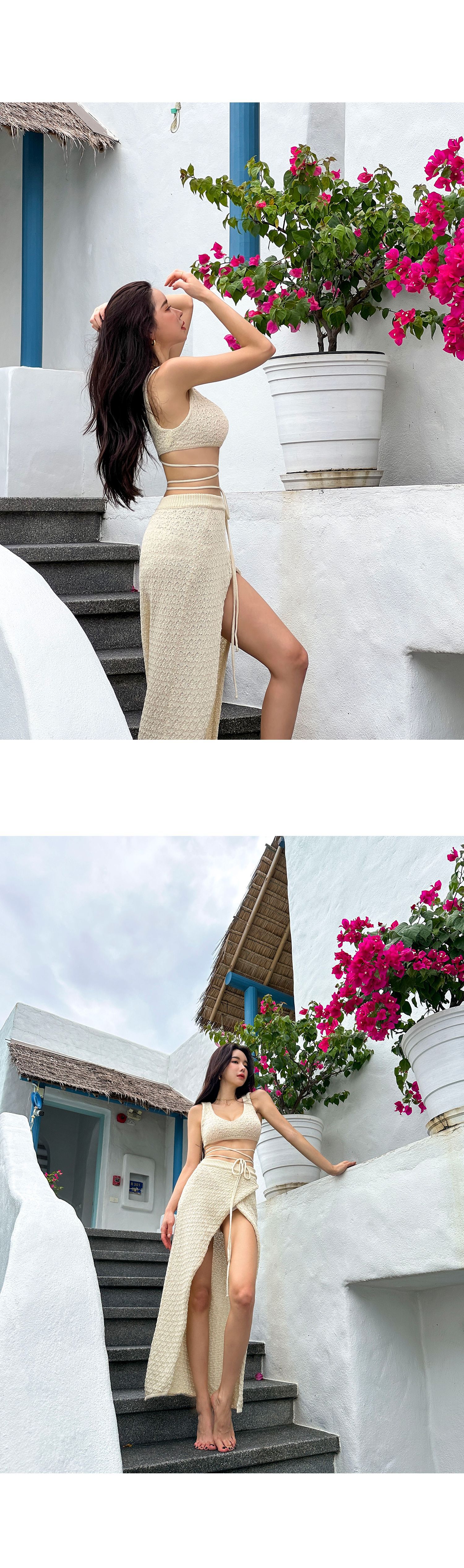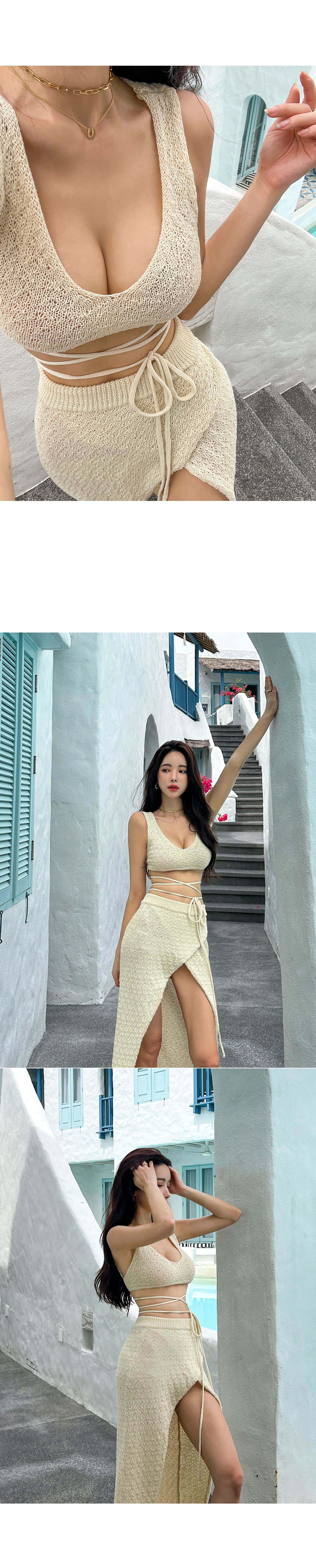 2024 새로운 니트 스플릿 수영복 여성 한국어 스타일 ins 스타일 심플 솔리드 컬러 비키니 3 피스 세트 + 비치 스커트