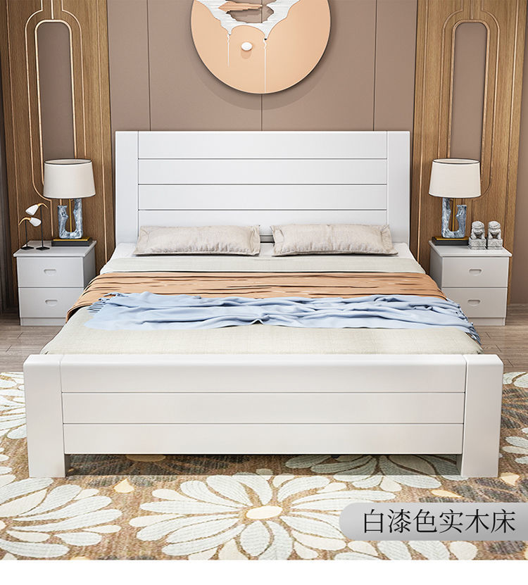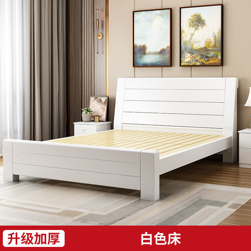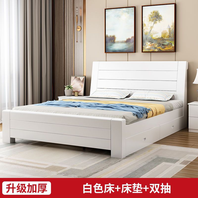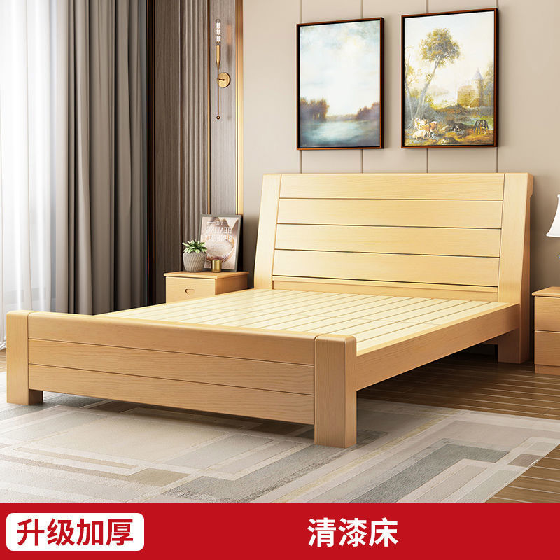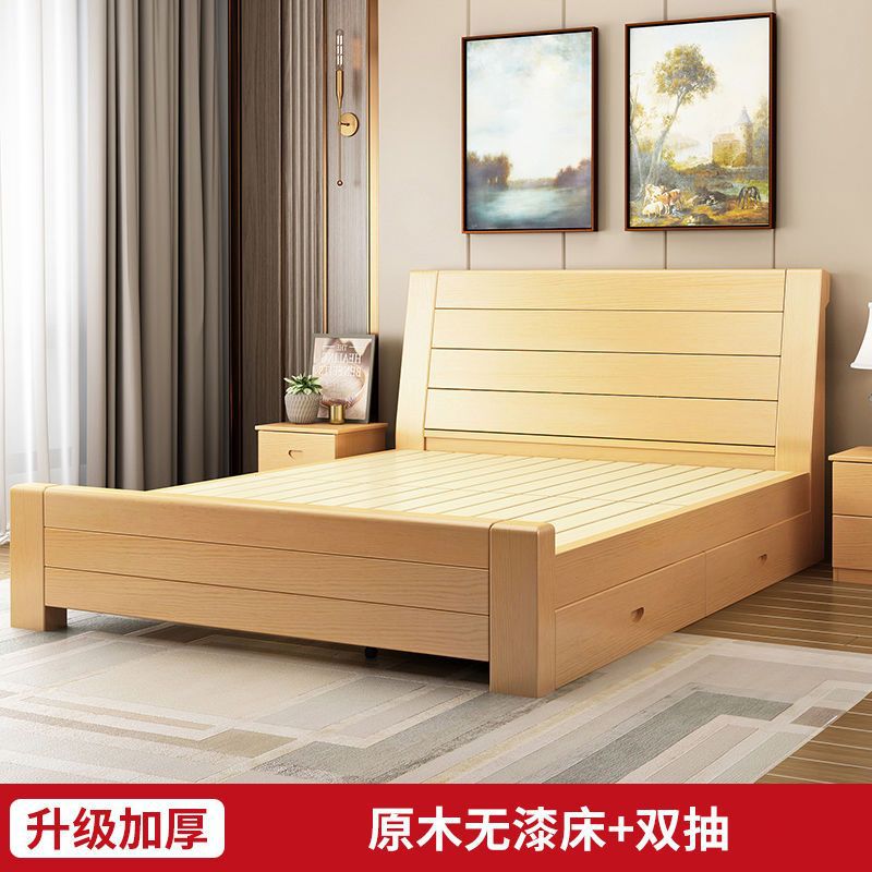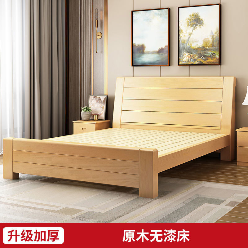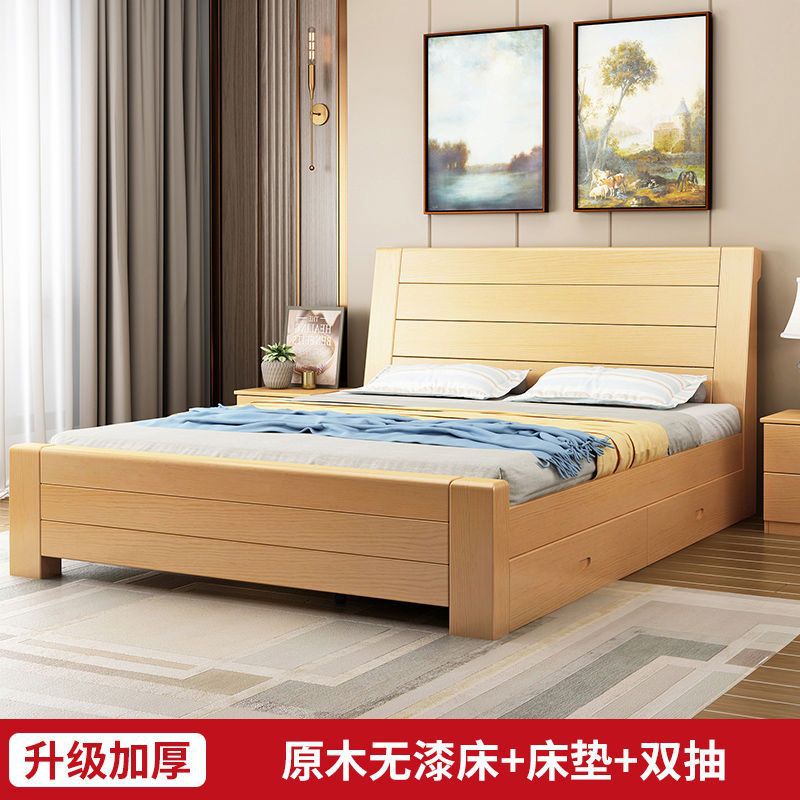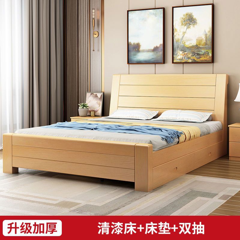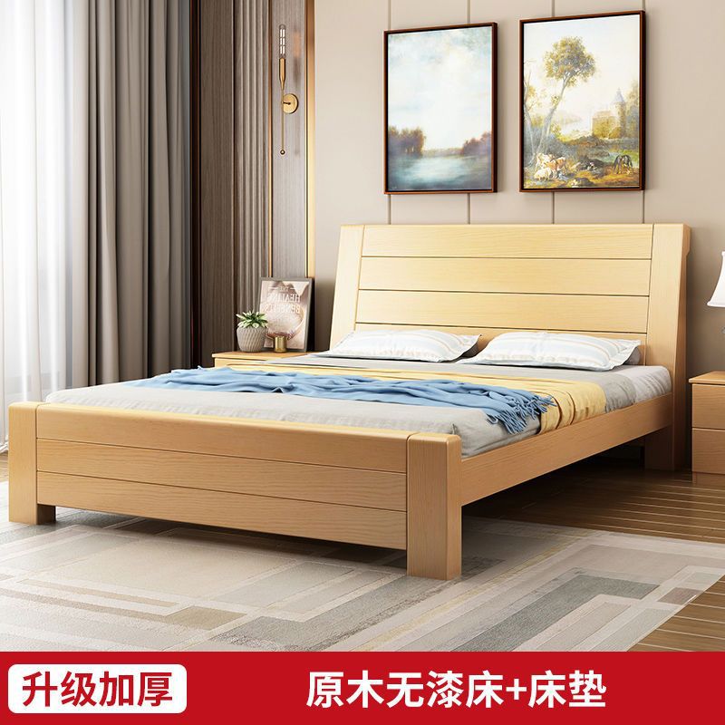 침대 현대 간단한 1.8 m 단단한 나무 큰 침대 북유럽 스타일 1.5 m 더블 침대 경제적 1 m 성인 부드러운 가방 침대스토어 가기