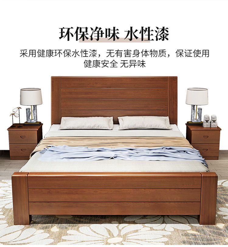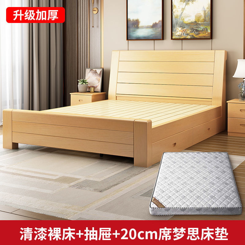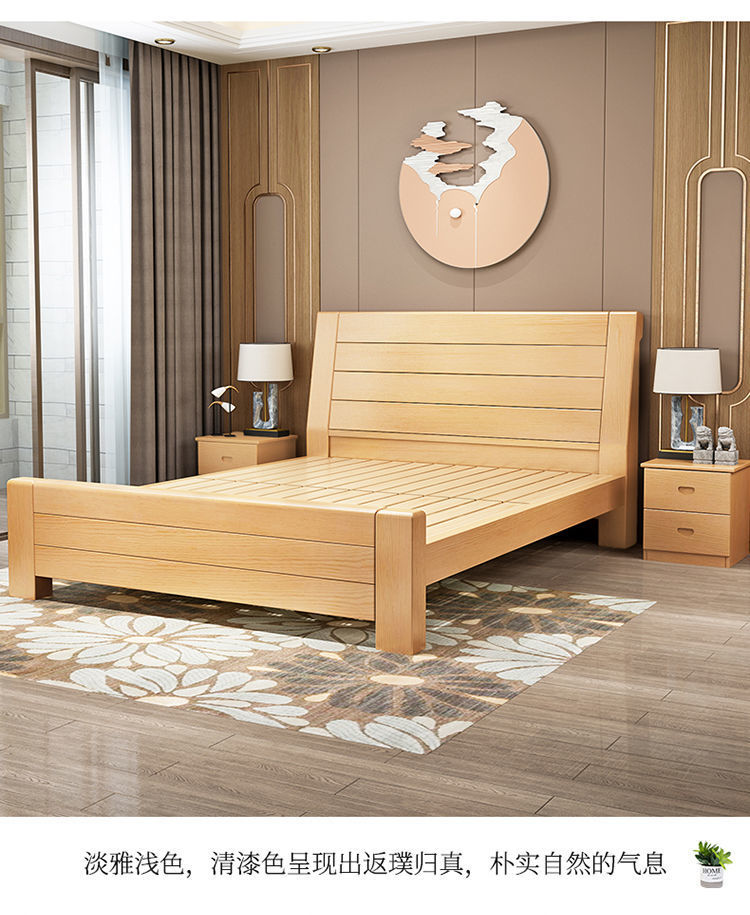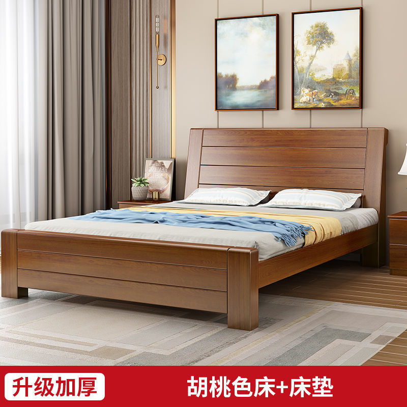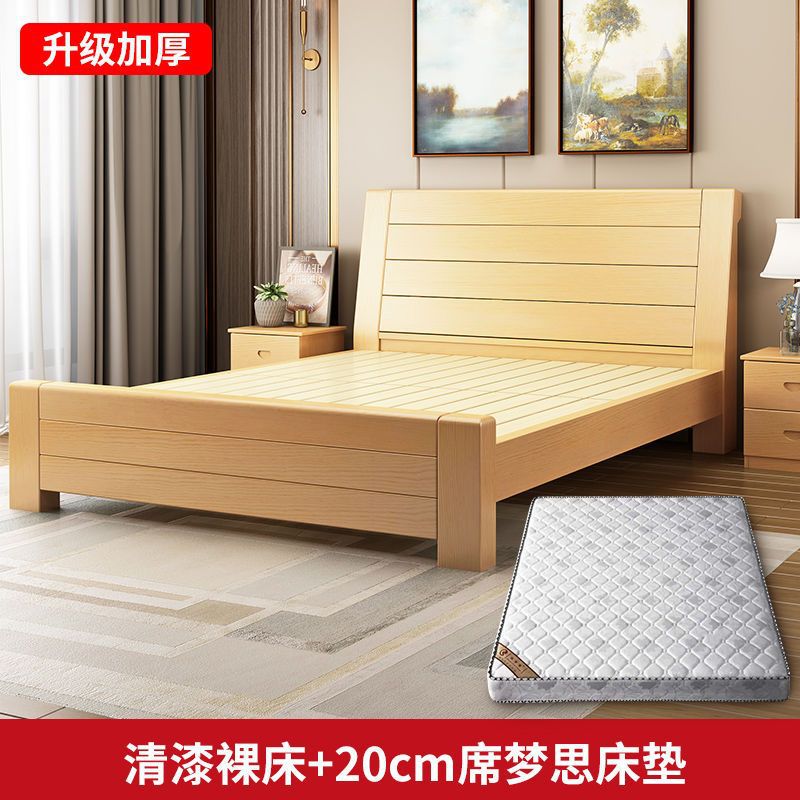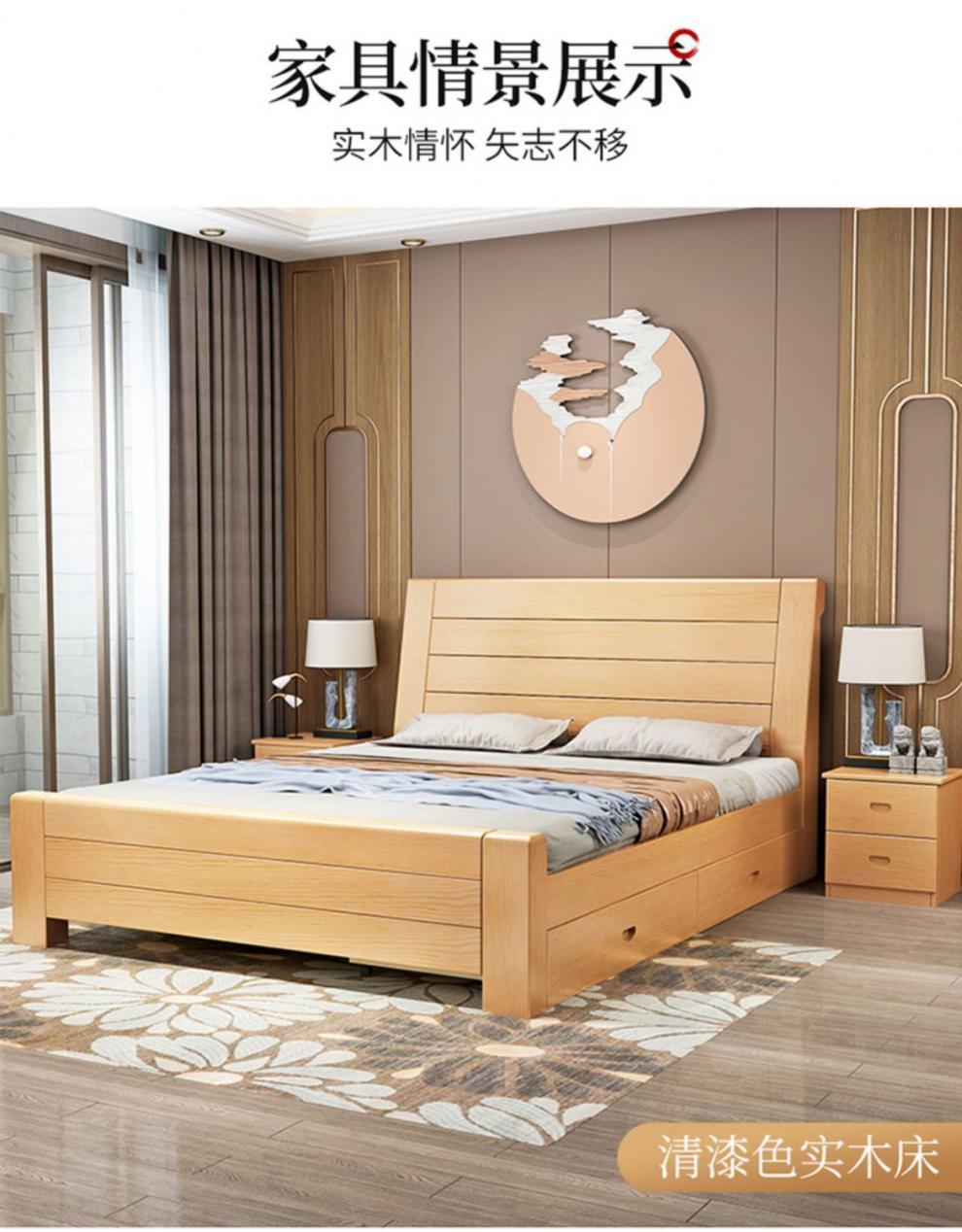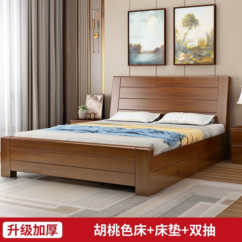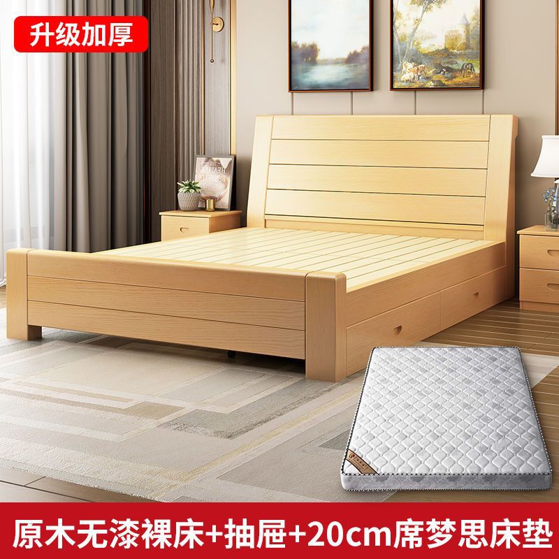 침대 현대 간단한 1.8 m 단단한 나무 큰 침대 북유럽 스타일 1.5 m 더블 침대 경제적 1 m 성인 부드러운 가방 침대스토어 가기